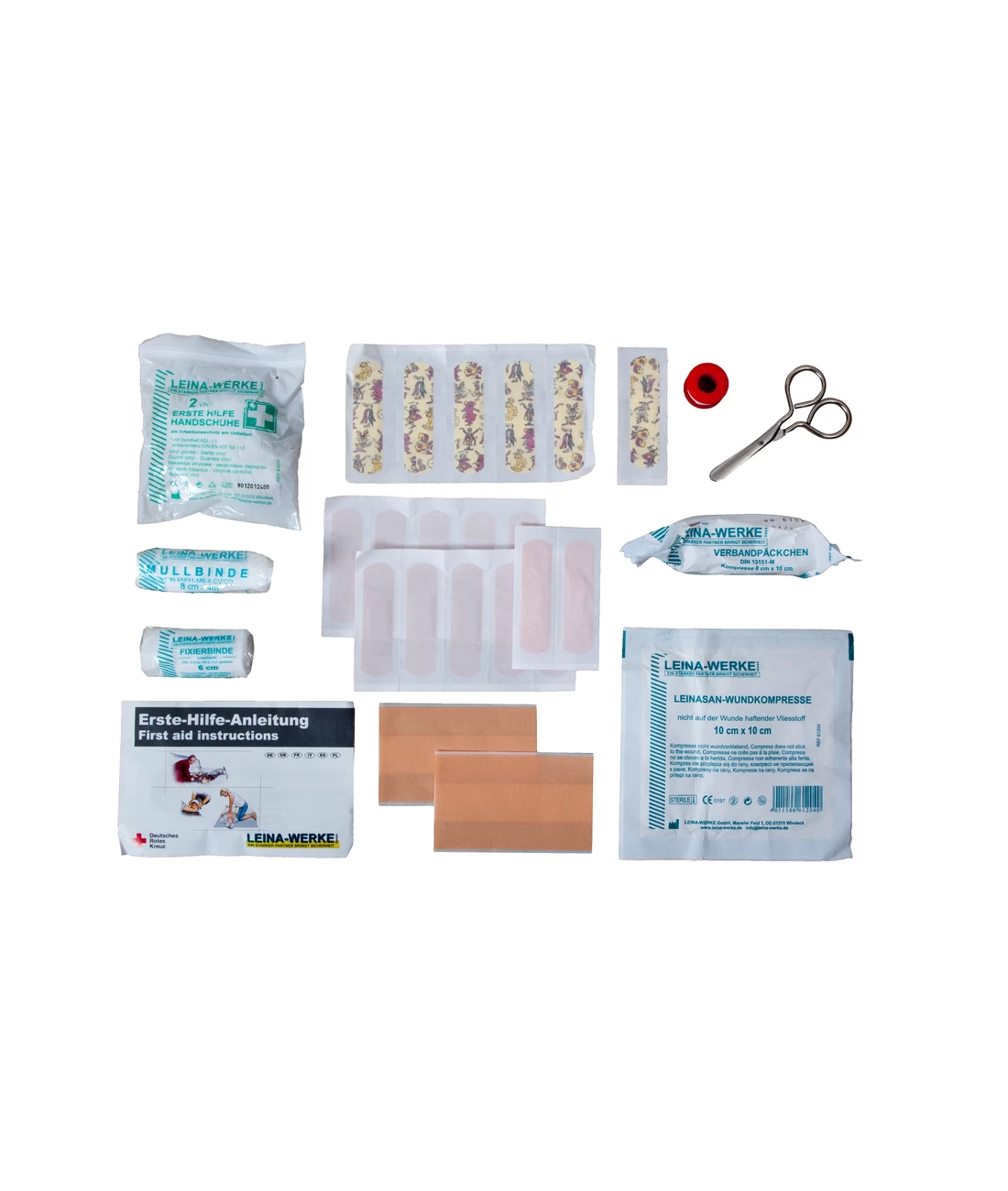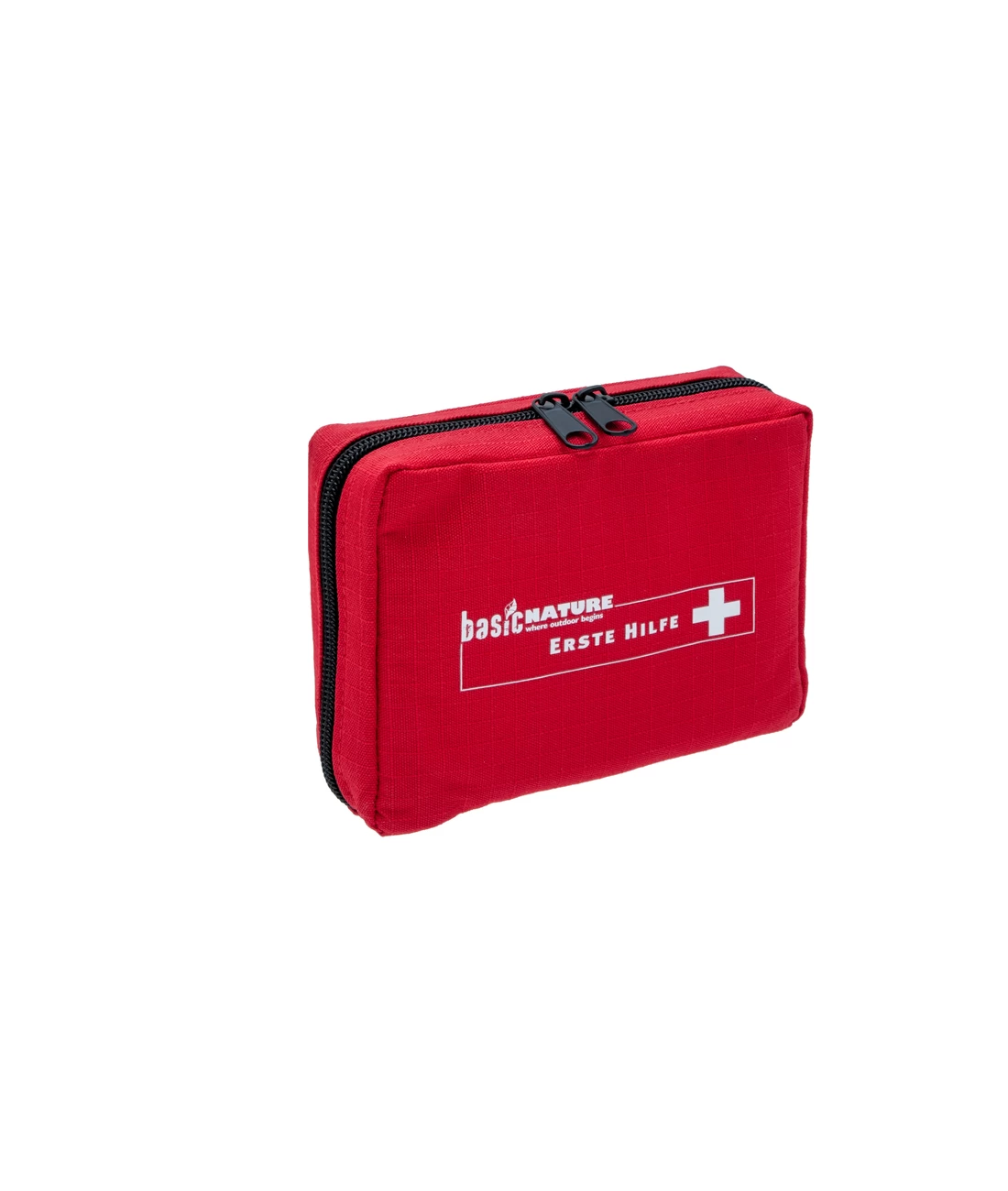 Gut bestückte Erste-Hilfe-Tasche mit der Standardausrüstung. Hochwertiger und zertifizierter Inhalt aus Deutschland. Ideal für Wandern, Trekking, Fahrrad und Reisen. Die robuste Tasche aus wasserabweisenden Nylon ist schnell zu öffnen und kann einfach mit der Druckknopfschlaufe, sicher an der Ausrüstung, dem Boot oder dem Rucksack befestigt werden.