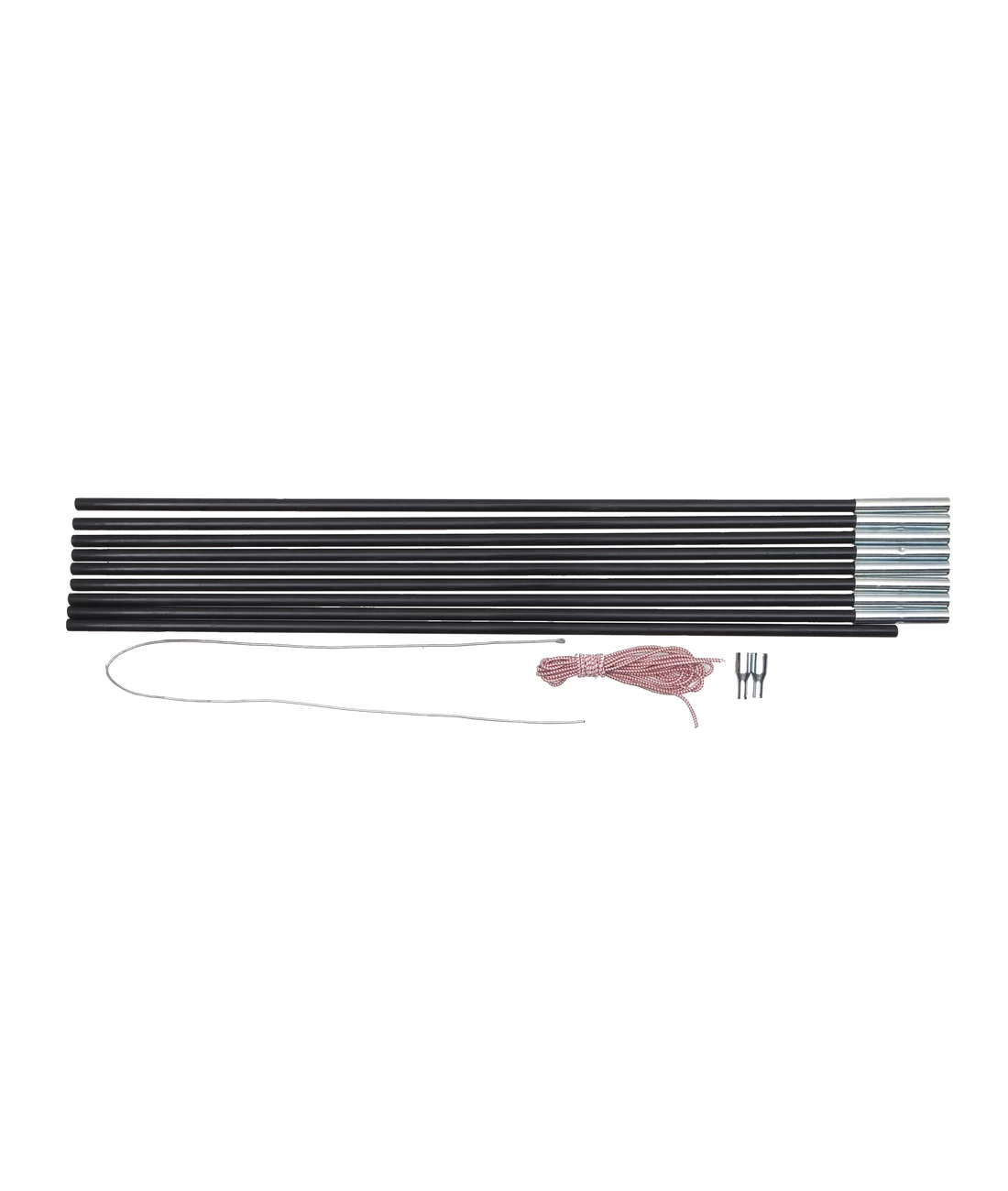 Ersatzstange für Zelte. Aus Fiberglas mit mehreren Segmenten. Komplett mit Gummiseil und Endtips.