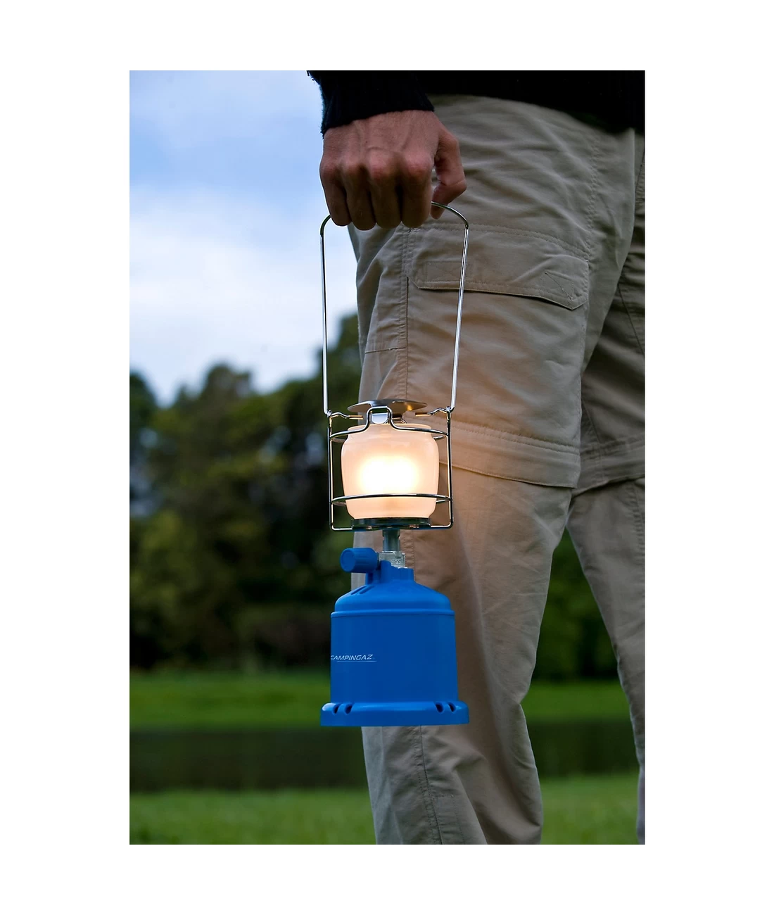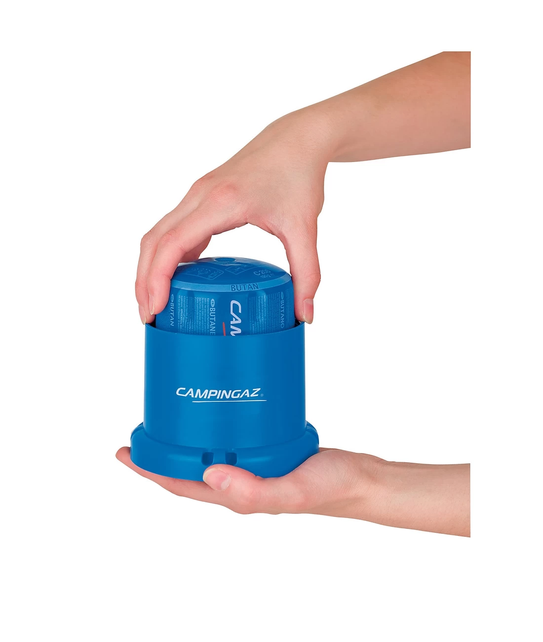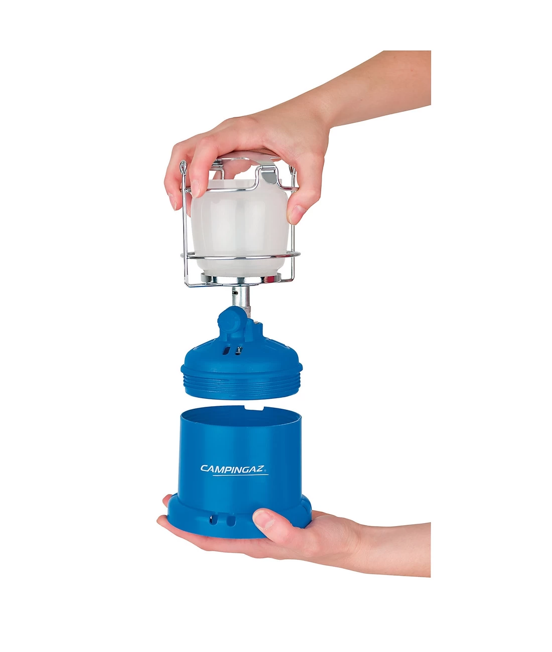 Standfeste und robuste Campinglampe mit sparsamem Verbrauch. Bei diesem Modell verschwindet die Kartusche C 206 GLS unsichtbar in der Schutzglocke. Die Kartusche darf erst vom Gerät entnommen werden, wenn sie vollständig entleert ist.