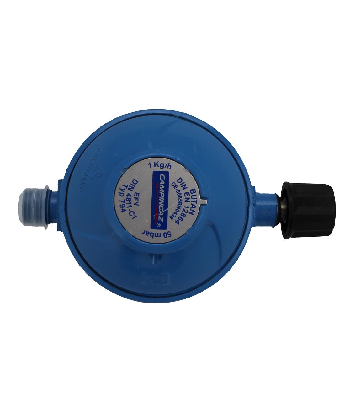 Campingaz®-Regler 50 mbar mit Schlauchbruchsicherung, nur für Campingaz® Butangasflaschen R 901, R 904 und R 907.