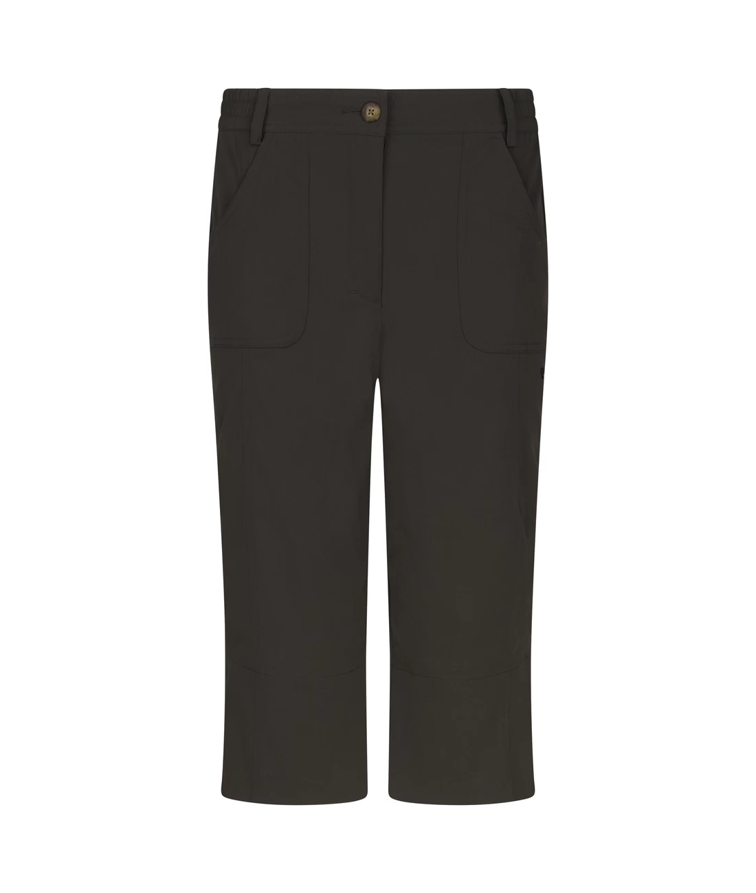 Modisch schicke Damen-Reisehose in luftiger Capri-Länge, die auch mit funktionellen Details, wie aufrollbare Hosenbeine und schnelltrocknendem, feuchtigkeitsregulierendem Funktionsmaterial überzeugt.