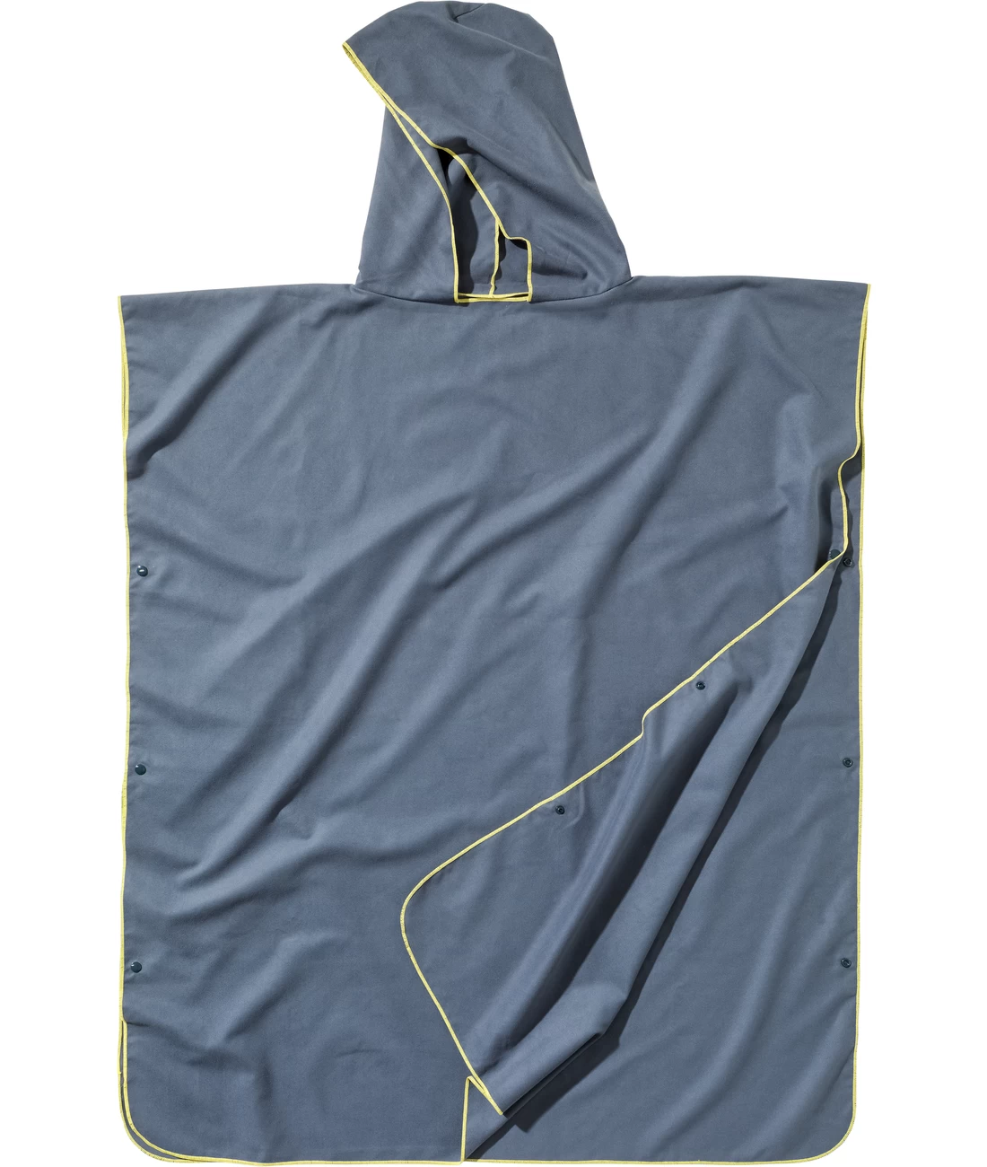 Der Poncho ist seitlich mit Druckknöpfen zu verschließen und bietet nach dem Abtrocknen Wärme und Privatsphäre zum Umkleiden.