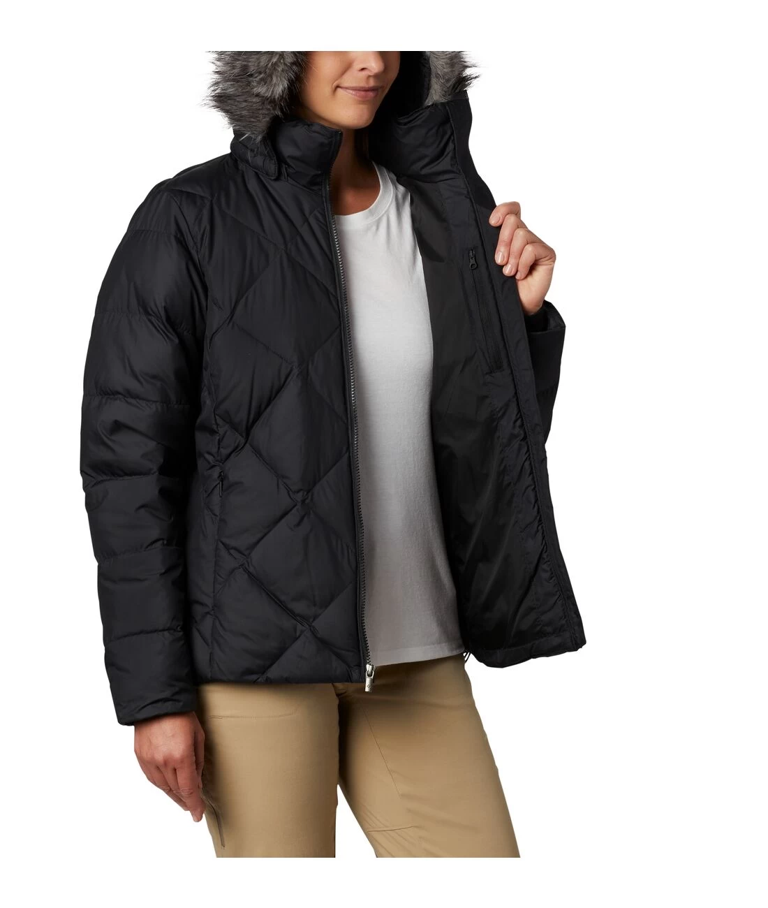 Diese warme, modische Daunenjacke für Damen hält Sie dank dem wasserabweisenden Obermaterial vor feuchtem Wetter geschützt und dank der 450er-Entendaunenisolierung kuschelig warm. Die Kapuze mit Kunstfellkragen können Sie nach Belieben abnehmen.