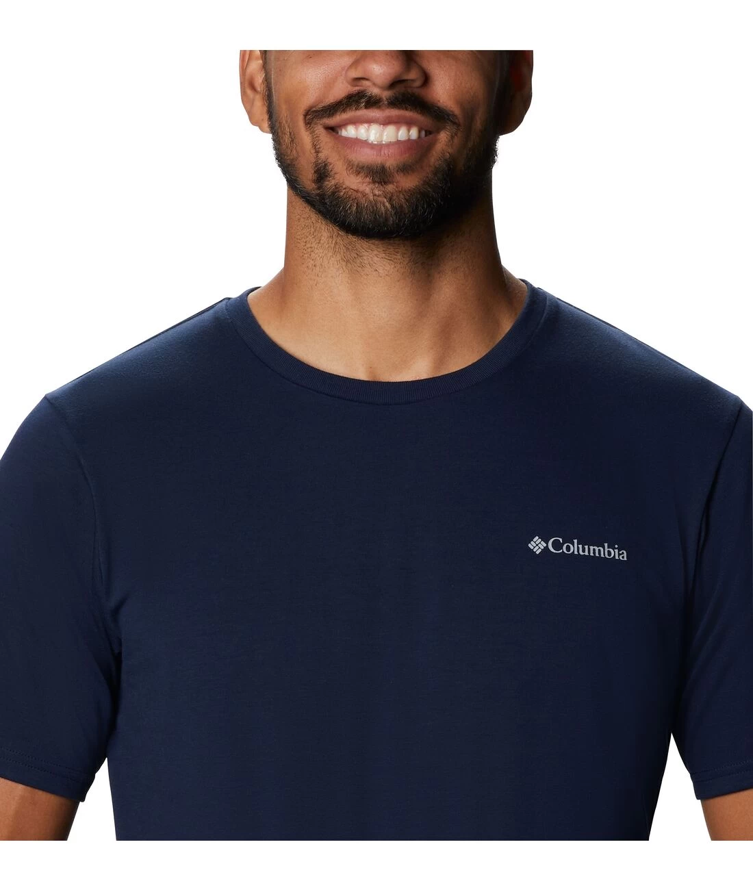 Das T-Shirt hat einen klassischen Rundhalsausschnitt und ein dezentes Logo auf der Brust. Es besteht aus einem technischen Gewebe, das Feuchtigkeit ableitet und Ihnen Non-Stop-Performance auf dem Trail bietet.