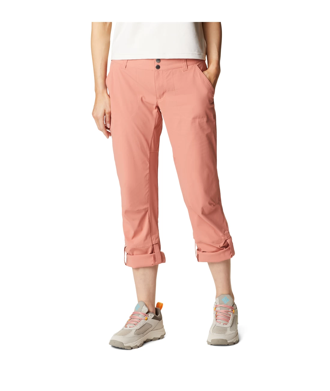 Diese Columbia-Hose für Frauen ist ideal für Outdoor-Aktivitäten. Sie ist vielseitig und schützt Sie, damit Sie immer das beste Berg-Erlebnis bekommen. Die Mid-Rise Hose ist gerade geschnitten und besteht aus einem dehnbaren Material. Dank der vorgeformten Knie können Sie sich frei bewegen. Außerdem bietet sie einen verlässlichen Sonnenschutz von UPF 50 und ist wasserabweisend. Wenn es während Ihrer Wanderung wärmer wird, können Sie die Beine einfach hochkrempeln und haben in Sekundenschnelle eine Caprihose.