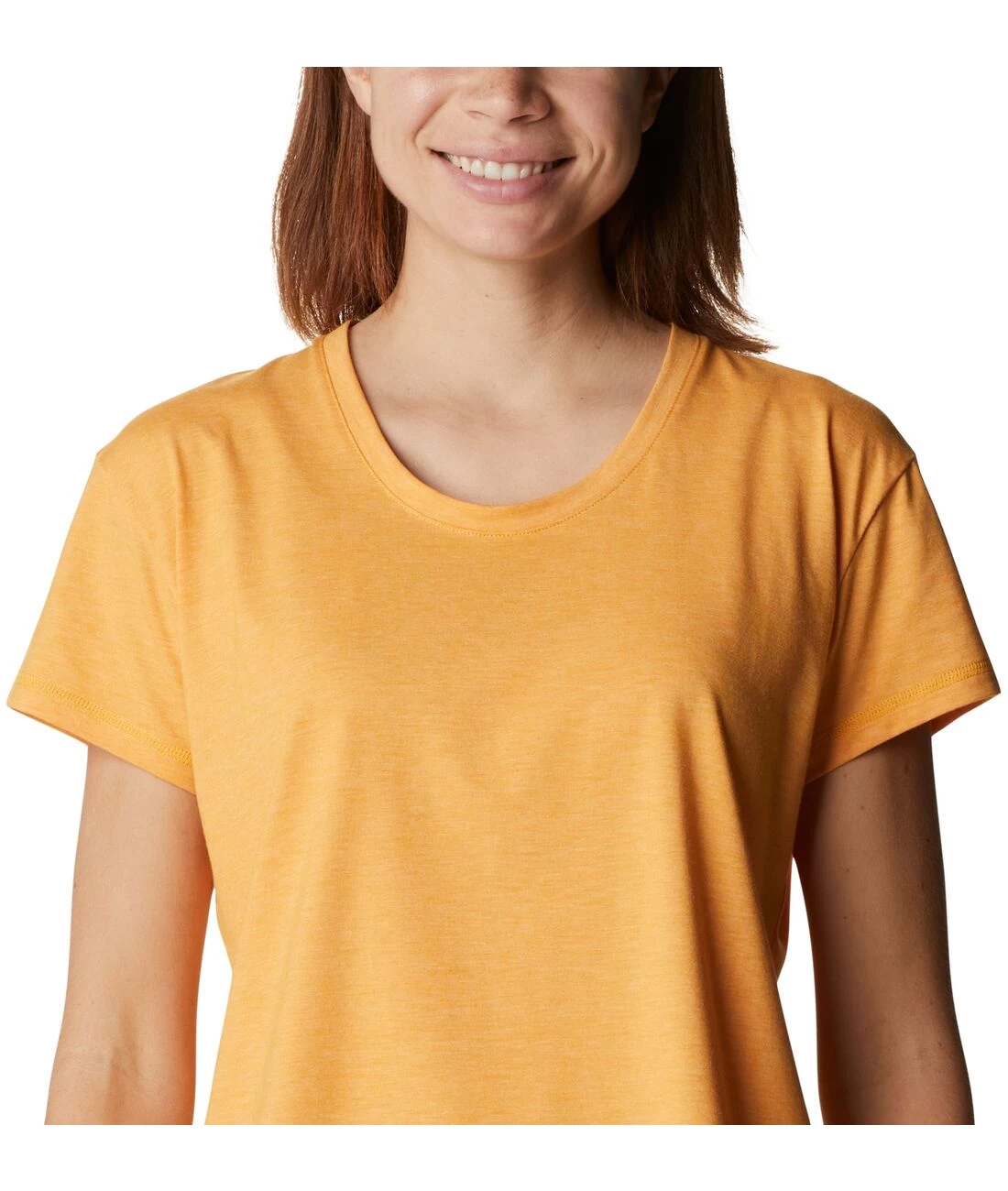 Neben dem minimalistischen Design hat dieses technische T-Shirt fortschrittliche Funktionen, mit denen Sie Ihre Tage im Freien (noch mehr) genießen können. Das weiche und dehnbare Material ist bequem und schützt dich, indem es UV-Strahlen abhält und Feuchtigkeit nach außen transportiert. Dieses technische T-Shirt für Frauen schützt Sie bei all Ihren Abenteuern und hält Sie trocken.