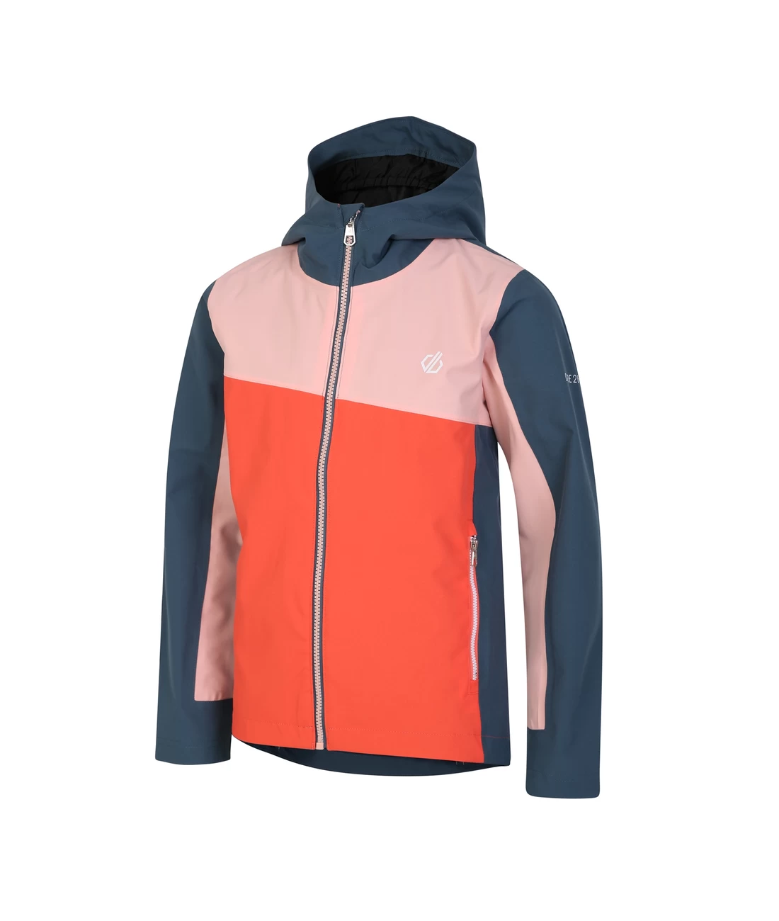 - Angeschnittene, technische Kapuze mit hoch geschnittenem Kragen und Gummizug