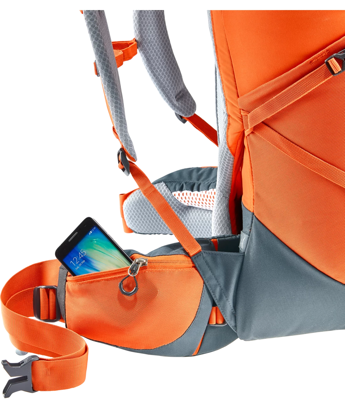 Komfortables Multi-Talent dank abnehmbarer Kompressionsriemen, die je nach Einsatz und Ausrüstung so modifiziert werden, dass unterschiedlichste Anbringungen von Gegenständen möglich sind. Der Tragekomfort wird durch das Aircontact Rückensystem mit Air Spacer Mesh und großem Belüftungskanal, die ergonomischen ActiveFit Schulterträger und den verstellbaren Brustgurt sichergestellt. Für eine optimale Lastverteilung und -kontrolle auf langen Strecken sorgen der Y-Rahmen, die beweglichen, passgenauen Hüftflossen und das ergonomische, trapezförmige Lumbalpad.