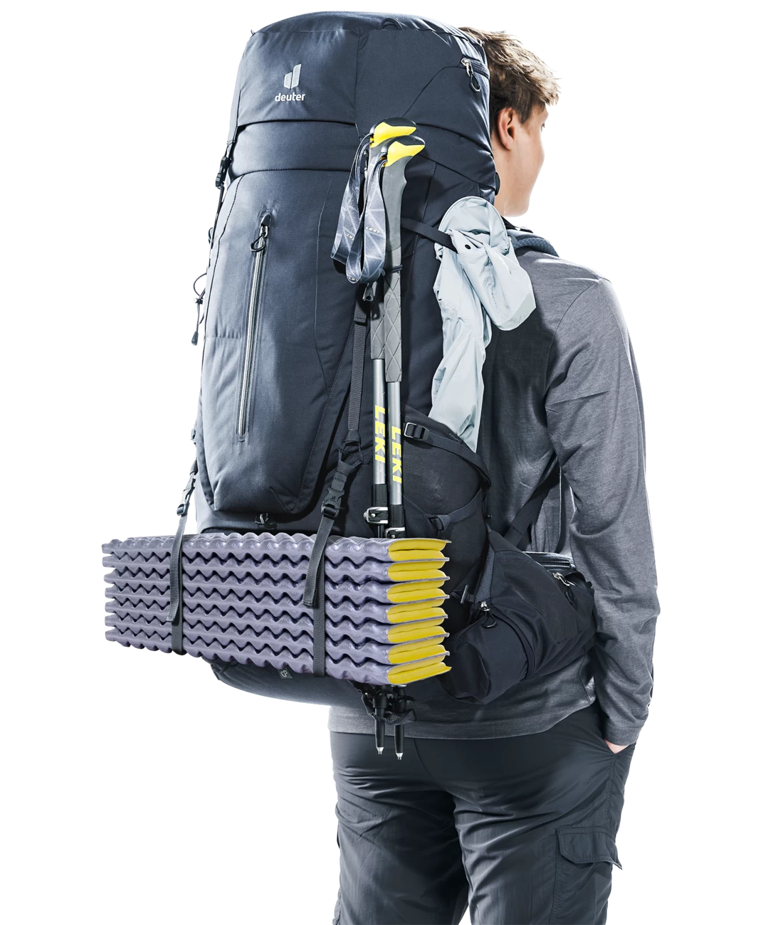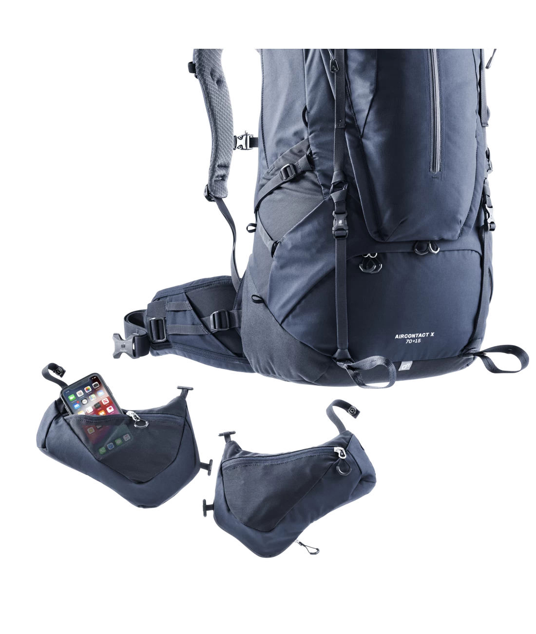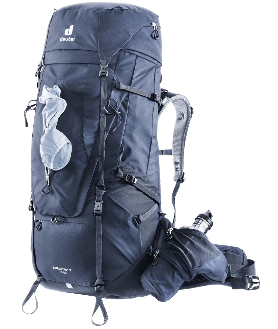 Ein Multifunktions-Profi dank individuell fixierbaren Kompressionsriemen für flexible Anbringung der Ausrüstung. Zudem besitzt der Rucksack aus bluesign® zertifiziertem Hauptmaterial weiteren Stauraum in den abnehmbaren Hüftflossentaschen. Eine Trinkflasche hat Platz in der ausklappbaren Tasche. Die jeweiligen Volumengrößen des Aircontact X sind durch die verstellbare Rückenlänge des VariSlide System, die passgenauen VariFlex Hüftflossen und die beweglichen ActiveFit Schulterträger auf die individuelle Größe des Trägers optimierbar und dank großflächigem Air Spacer Mesh angenehm zu tragen.