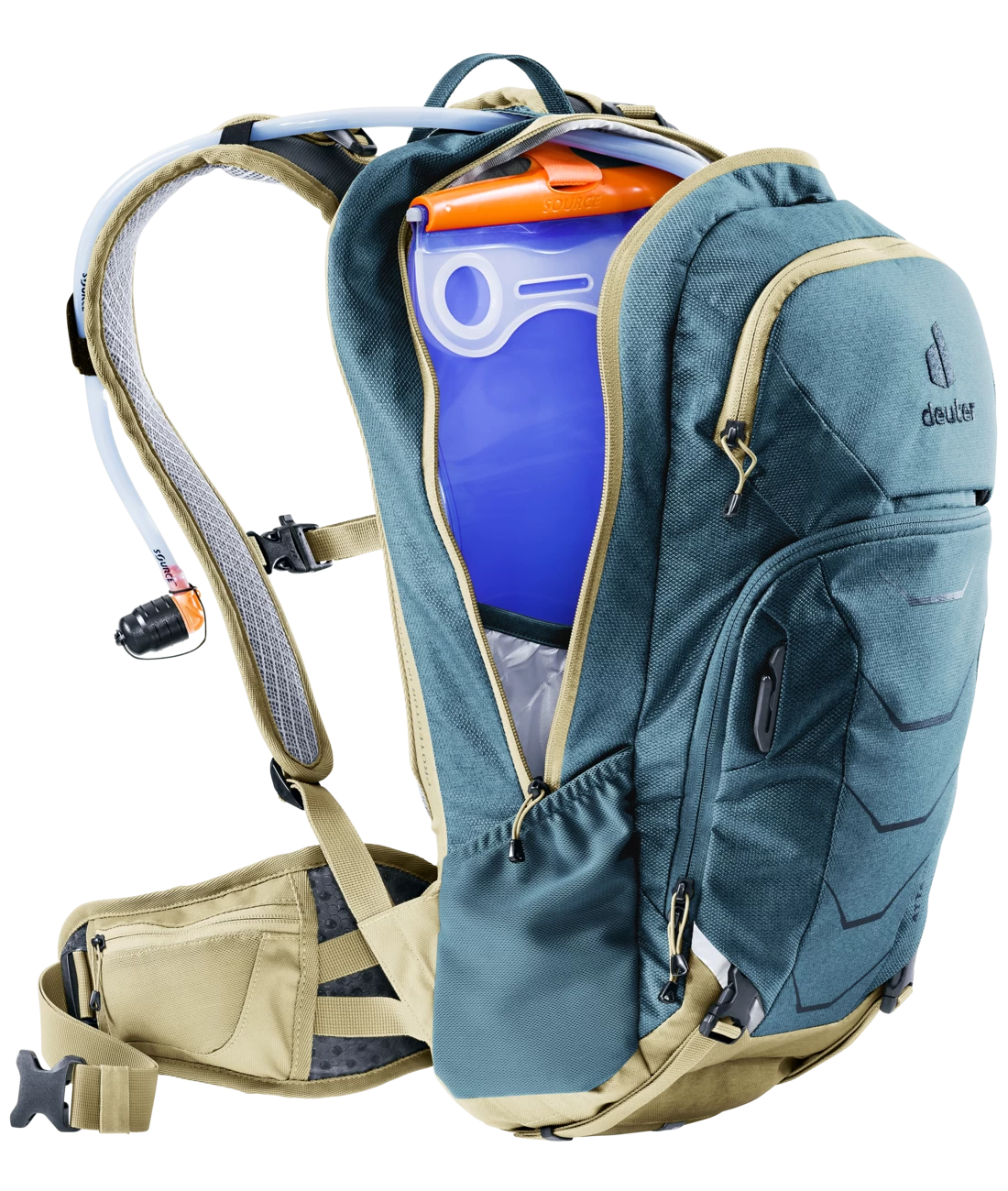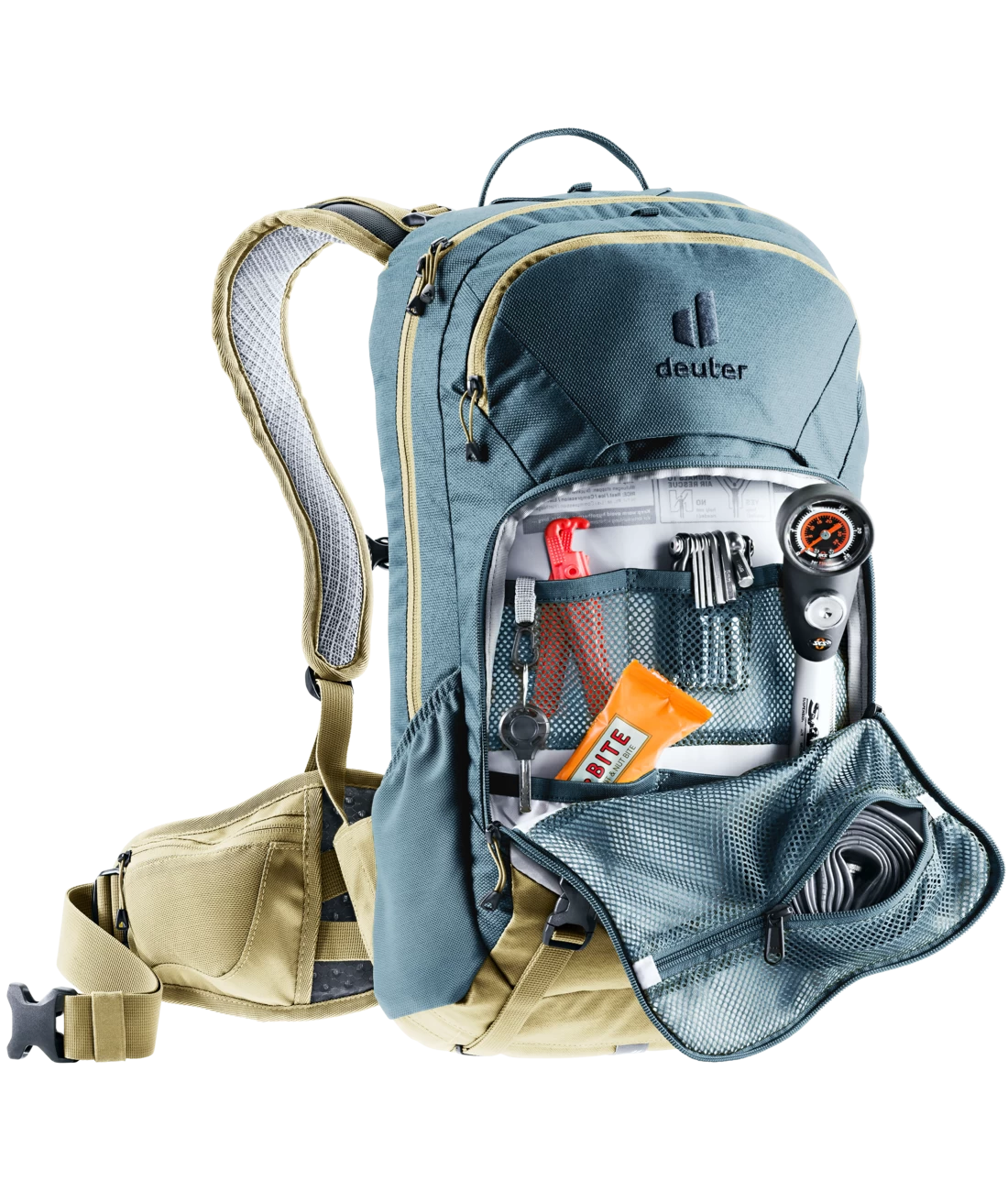 - Vortasche mit großem Organisationsteil und RV Netztasche für Schlauch, Werkzeug und Pumpenhalterung