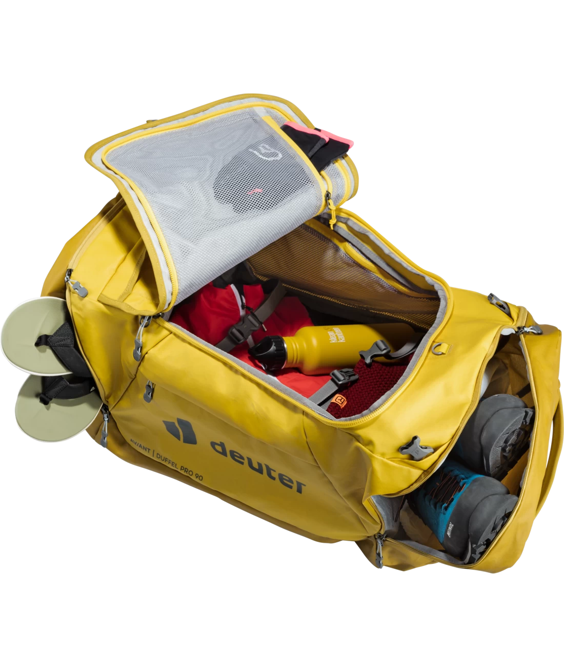 Sie verbinden häufig Sport und Reisen? Die Aviant Duffel Pro bietet viel Platz für Ihre Ausrüstung und Bekleidung. Mit den verstaubaren Schulterträgern funktioniert die Reisetasche auch als Rucksack. Die robusten, nachhaltig produzierten Begleiter sind bluesign zertifiziert und schützen Ihr Gepäck vor Nässe und Staub. Wieder zu Hause können Sie Ihre Duffel ganz einfach zusammenfalten und in der integrierten Außentasche verstauen.