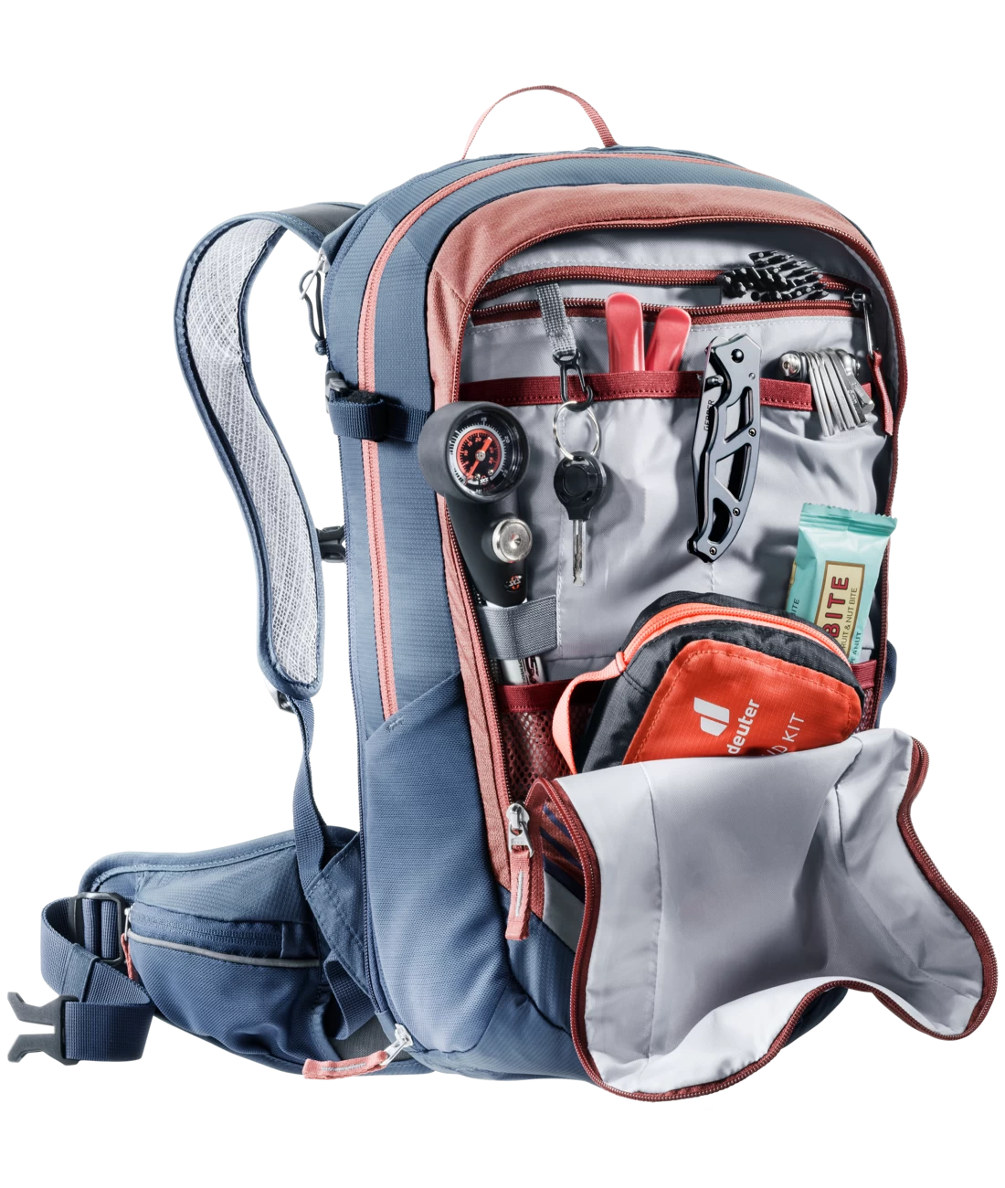 Der Compact ist ein Bike-Rucksack für Mountainbiker, der bequem und fest auf dem Rücken sitzt. Er besticht vor allem mit seiner perfekten Ausstattung: Er hat ein extra Fach für die Trinkblase, ein separates Fach für das Smartphone, ein übersichtliches Werkzeugfach, zwei Reißverschluss-Taschen auf den Hüftflossen und zwei elastische Seitentaschen. Außerdem besteht die Möglichkeit das Volumen des Rucksacks zu erweitern. Der Halbschalenhelm kann ganz einfach vorne in die Befestigungs-Clips gehangen werden, während sich die seitlichen Kompressionsriemen zur Fixierung des Fullface-Helms eignen.