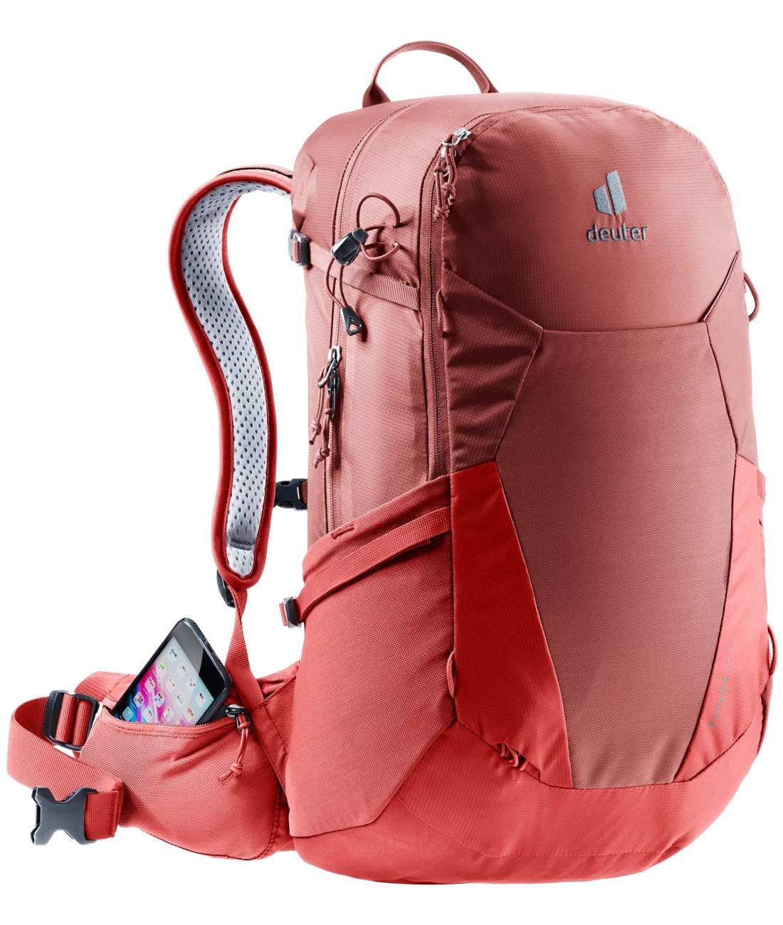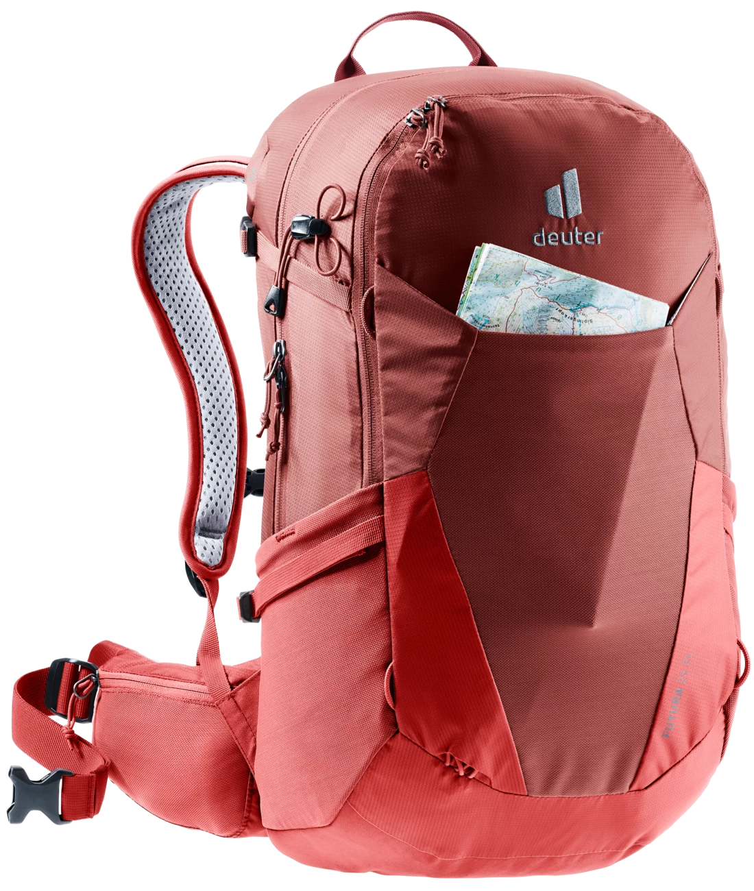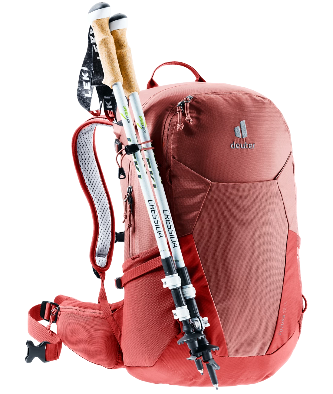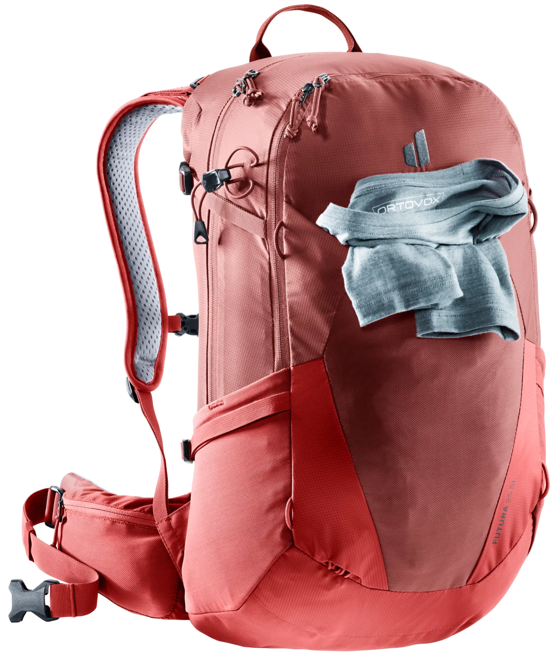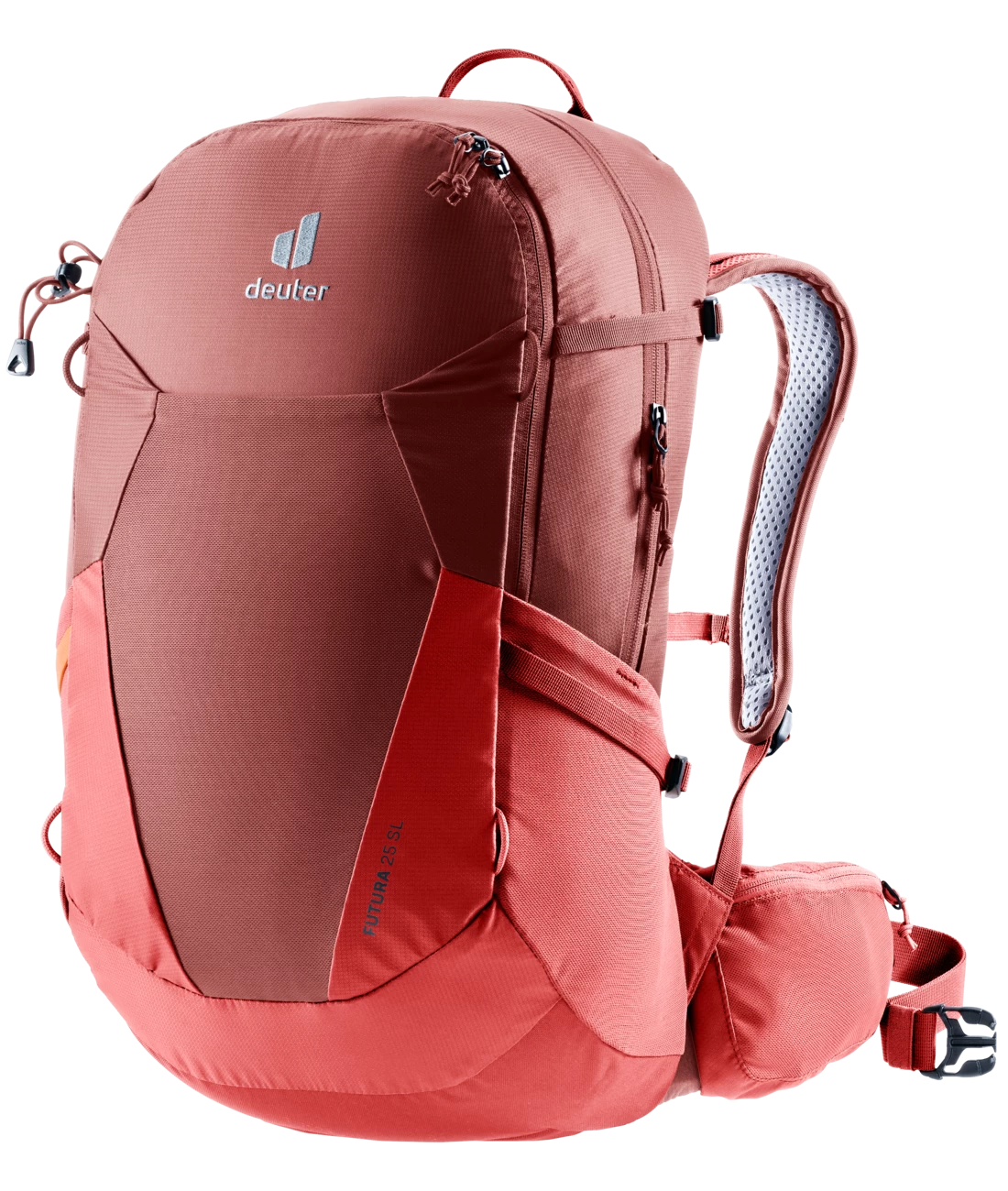 Der leichte und funktionelle Futura SL Wanderrucksack ist speziell auf die weibliche Anatomie abgestimmt. Mit einem kürzeren Rücken, schmäleren Schulterträgern und konisch geformten Hüftflossen sitzt der Futura SL bequem auf dem Rücken. Das luftige Aircomfort Rückensystem sorgt mit dem neuen Mesh, bei sportlichen Tageswanderungen, für maximale Belüftung am Rücken. Sollte die Kleidung feucht werden, kann sie in der elastischen und luftdurchlässigen Fronttasche während der Wanderung schnell trocknen.