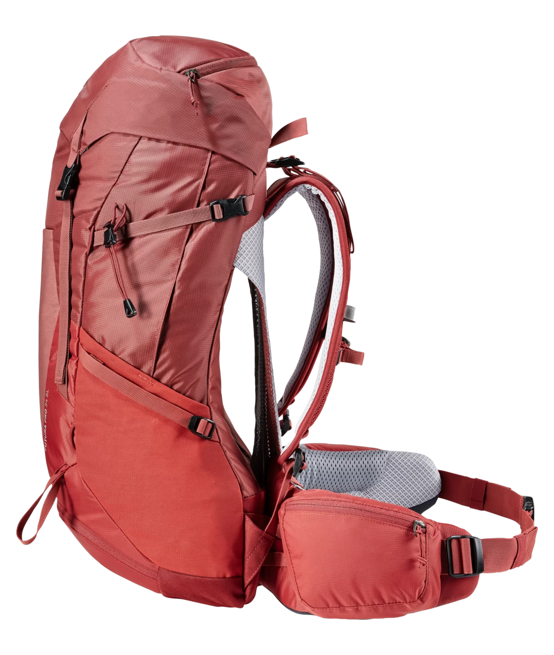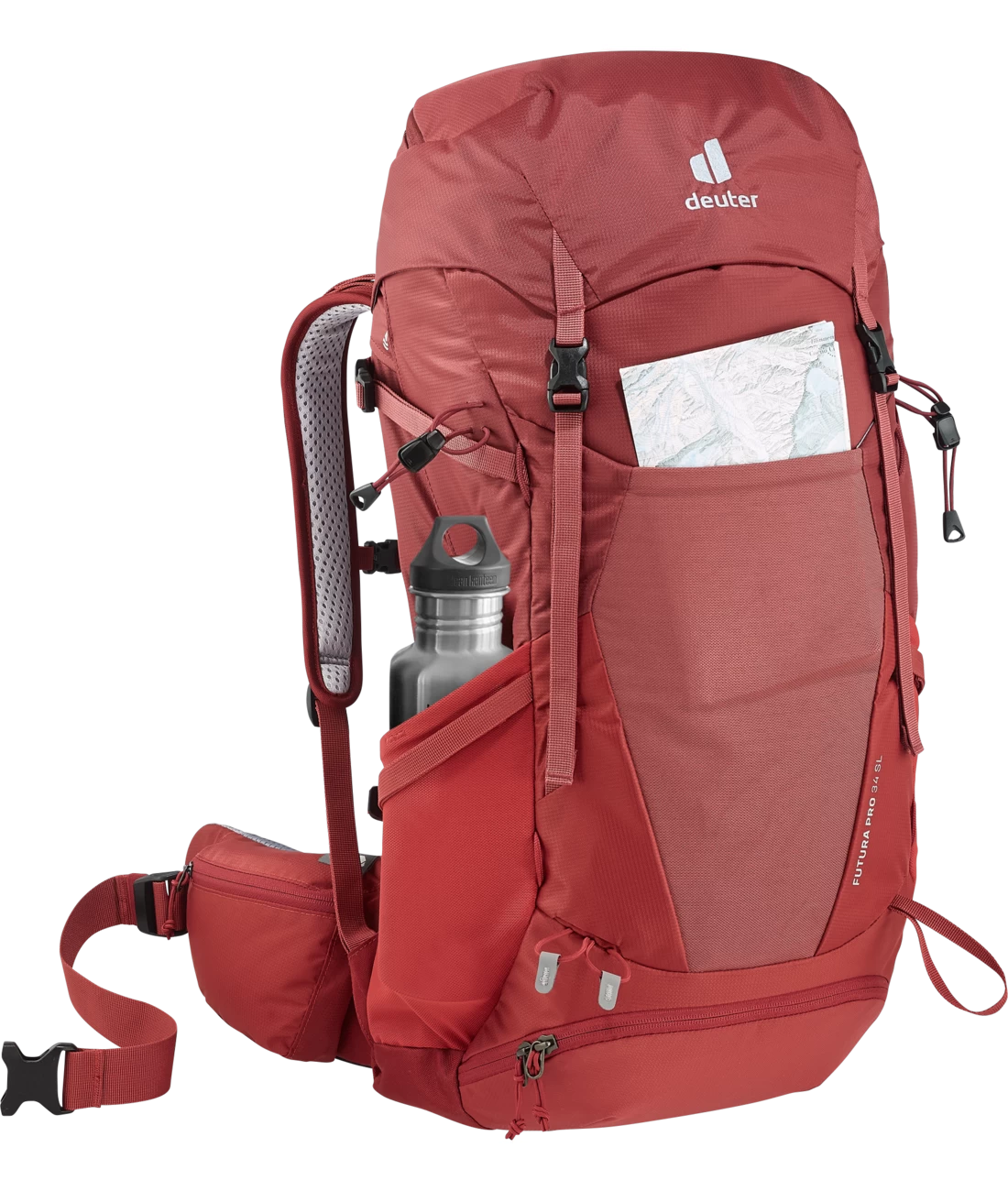Der auf die weibliche Anatomie abgestimmte Futura Pro SL wurde für Mehrtagestouren entwickelt, bei denen es an Komfort nicht mangeln darf. Daher besitzt der Rucksack das ergonomische Aircomfort Sensic Pro Netzrücken System. Dieses sorgt aufgrund des neuartigen Mesh für maximale Rückenbelüftung. Zudem ermöglichen die beweglichen VariFlex ECL Hüftflossen mit ergonomischen Polstereinsätzen ein energiesparendes Tragen. Dank der klaren Fächeraufteilung lässt sich das Gepäck im Deckelfach, in seitlichen Balgtaschen, im separaten Bodenfach sowie im geräumigen Hauptfach sinnvoll und leicht verstauen.