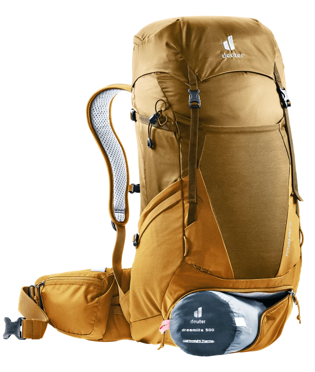 Der bis ins Detail durchdachte Futura Pro wurde für Mehrtagestouren entwickelt, bei denen es an Komfort nicht mangeln darf. Daher besitzt der Wanderrucksack das ergonomische Aircomfort Sensic Pro Netzrücken System. Dieses sorgt aufgrund des neuartigen Mesh für maximale Rückenbelüftung. Zudem ermöglichen die beweglichen VariFlex ECL Hüftflossen mit ergonomischen Polstereinsätzen ein energiesparendes Tragen. Dank der klaren Fächeraufteilung lässt sich das Gepäck im Deckelfach, in seitlichen Balgtaschen, im separaten Bodenfach sowie im geräumigen Hauptfach sinnvoll und leicht verstauen.