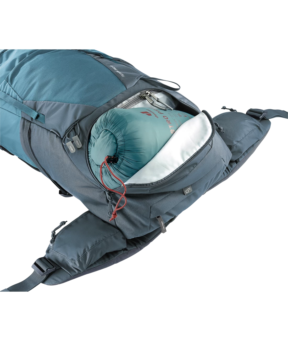 Der bis ins Detail durchdachte Futura Pro wurde für Mehrtagestouren entwickelt, bei denen es an Komfort nicht mangeln darf. Daher besitzt der Wanderrucksack das ergonomische Aircomfort Sensic Pro Netzrücken System. Dieses sorgt aufgrund des neuartigen Mesh für maximale Rückenbelüftung. Zudem ermöglichen die beweglichen VariFlex ECL Hüftflossen mit ergonomischen Polstereinsätzen ein energiesparendes Tragen. Dank der klaren Fächeraufteilung lässt sich das Gepäck im Deckelfach, in seitlichen Balgtaschen, im separaten Bodenfach sowie im geräumigen Hauptfach sinnvoll und leicht verstauen.