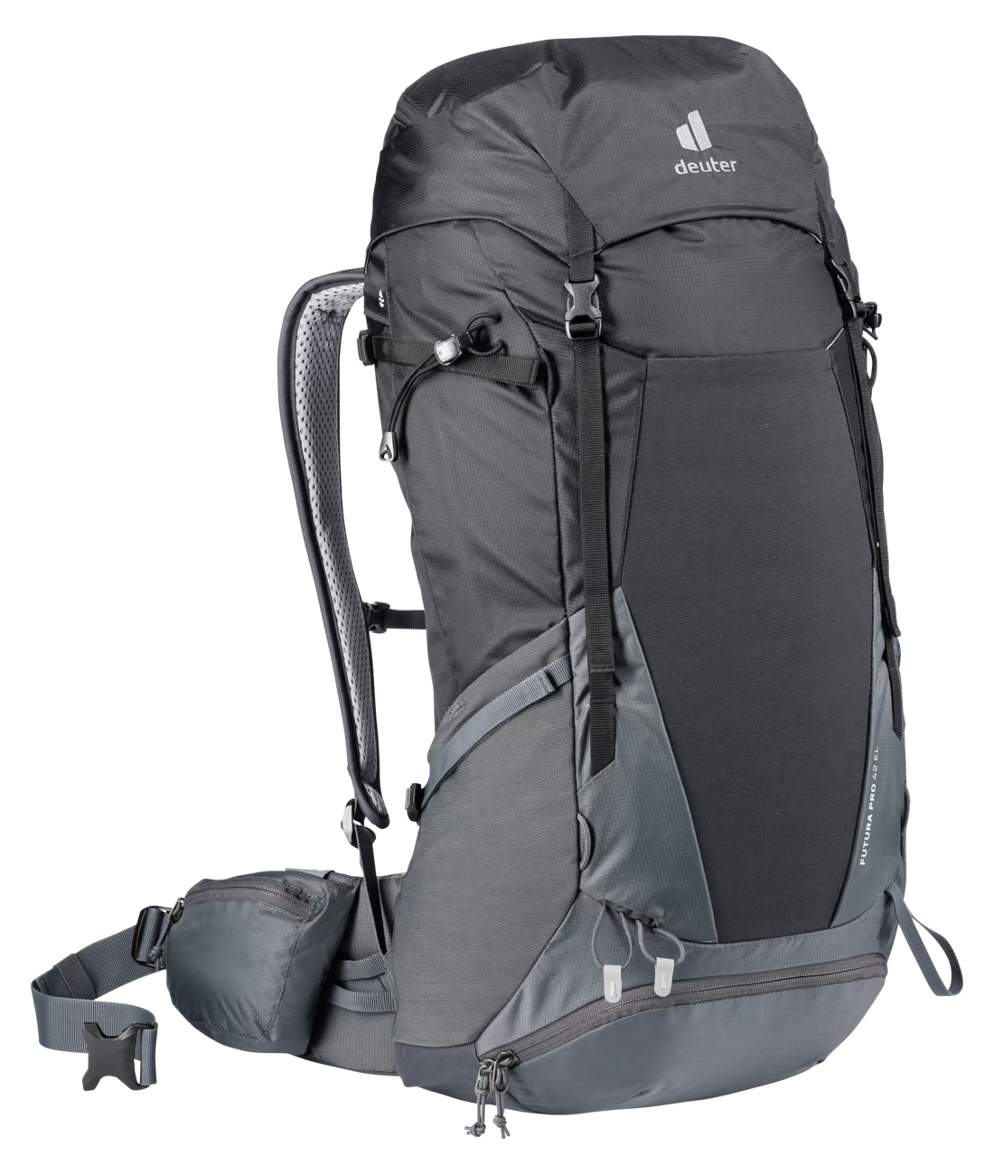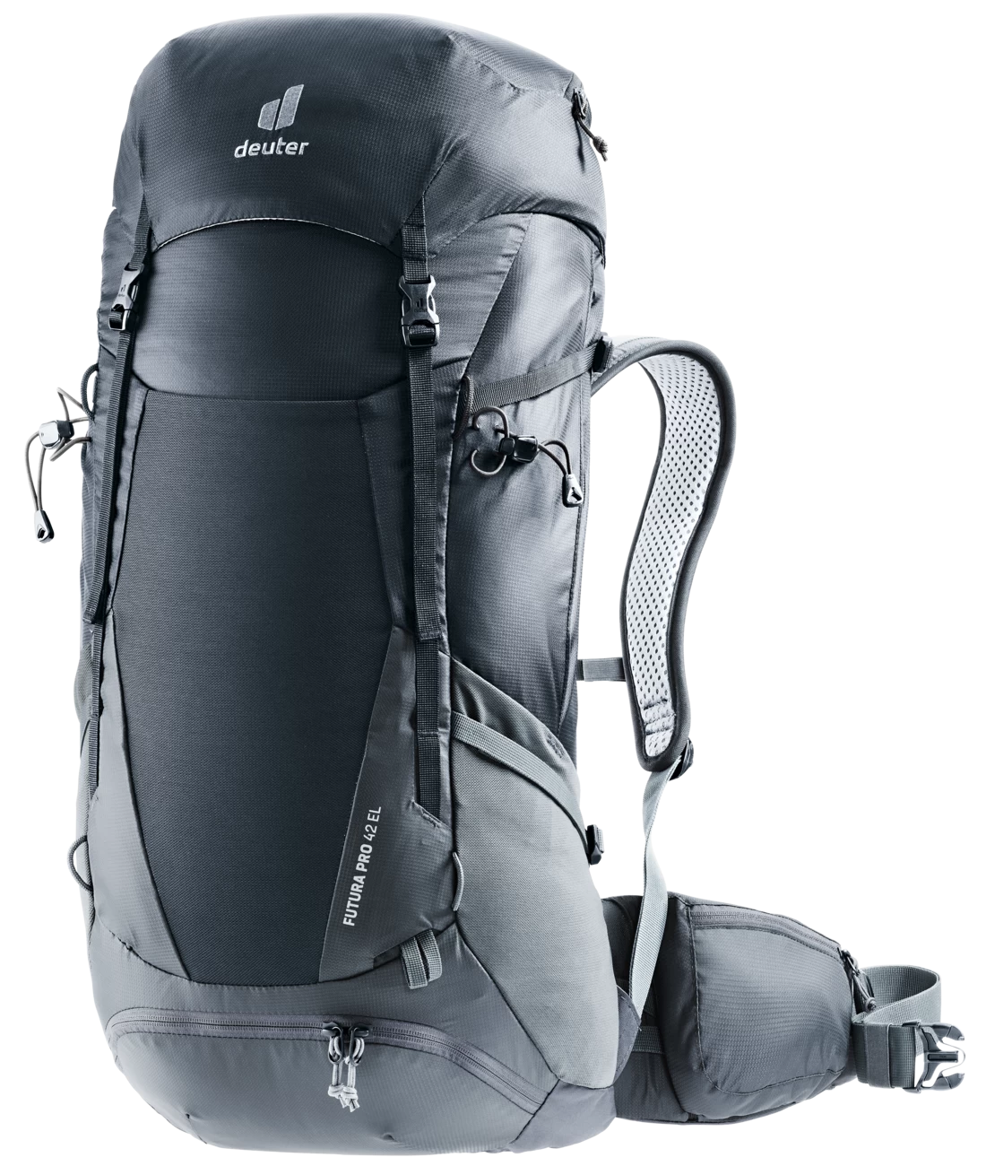 Der komfortable Mehrtagestouren-Rucksack Futura Pro EL ist auf die Anatomie besonders großer Menschen (ab 185 cm) abgestimmt. Das ergonomische Aircomfort Sensic Pro Netzrücken System sorgt aufgrund des neuartigen Mesh für maximale Rückenbelüftung. Zudem ermöglichen die beweglichen VariFlex ECL Hüftflossen mit ergonomischen Polstereinsätzen ein energiesparendes Tragen. Dank der klaren Fächeraufteilung lässt sich das Gepäck im Deckelfach, in seitlichen Balgtaschen, im separaten Bodenfach sowie im geräumigen Hauptfach sinnvoll und leicht verstauen.