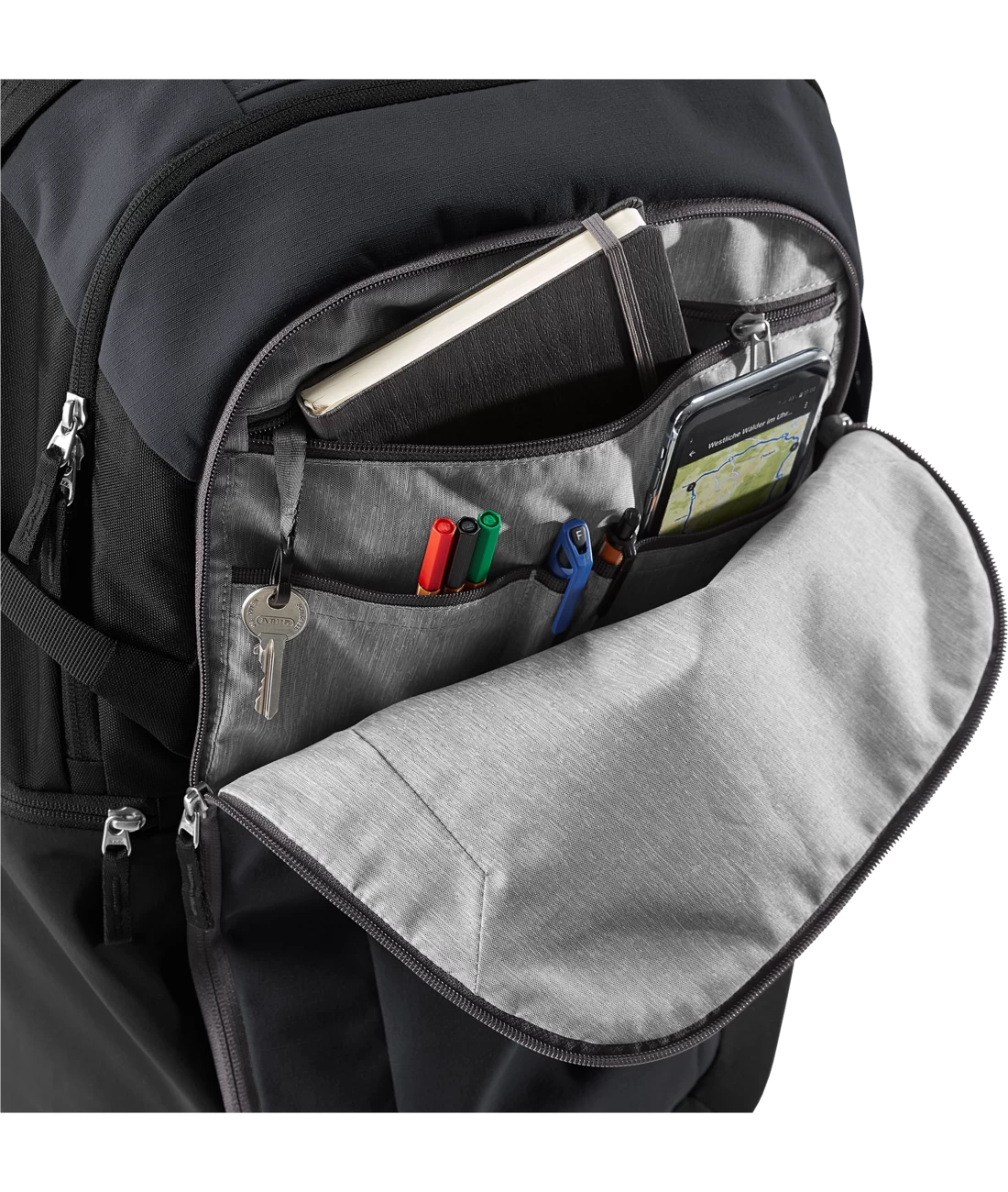 - Großes, ordnertaugliches Hauptfach mit integriertem Dokumentenfach