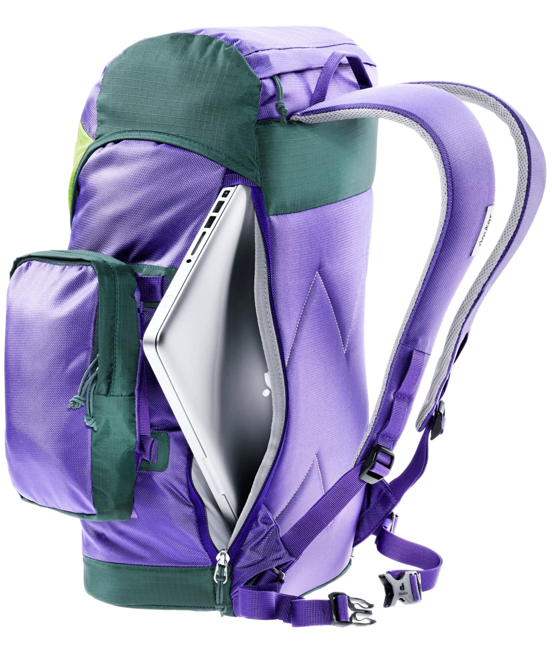 Im nachhaltig produzierten und bluesign zertifizierten Rucksack im 90er-Jahre-Design kann neben dem Laptop auch eine Trinkflasche sicher in der integrierten Tasche verstaut werden. Zudem dienen die abnehmbaren Seitentaschen des Lake Placid als zusätzliche Organisationsmöglichkeit im Innenraum. Und abnehmbare Riemen außen am Rucksack eignen sich ideal zur Befestigung einer Yogamatte oder eines Fotostativ.