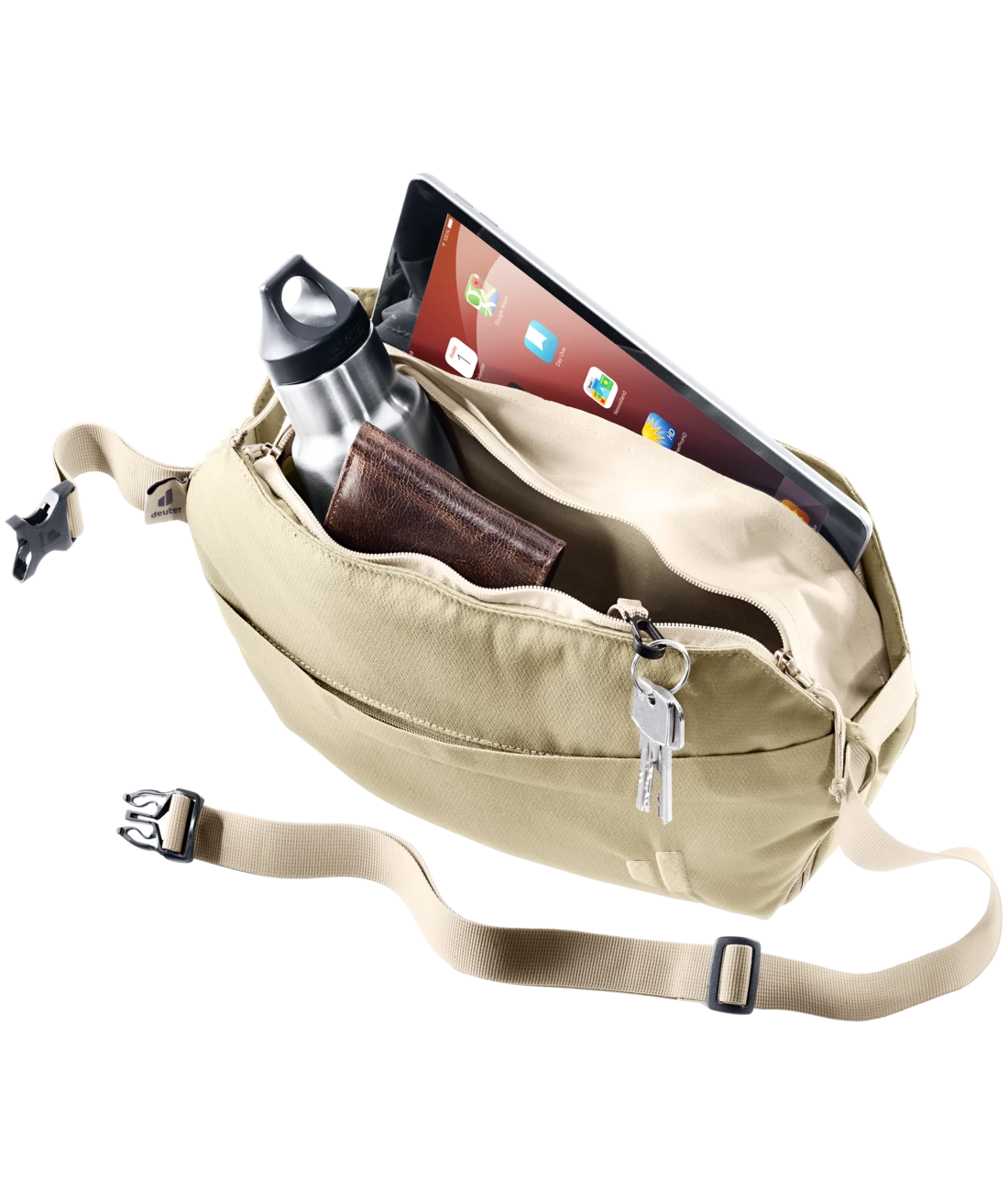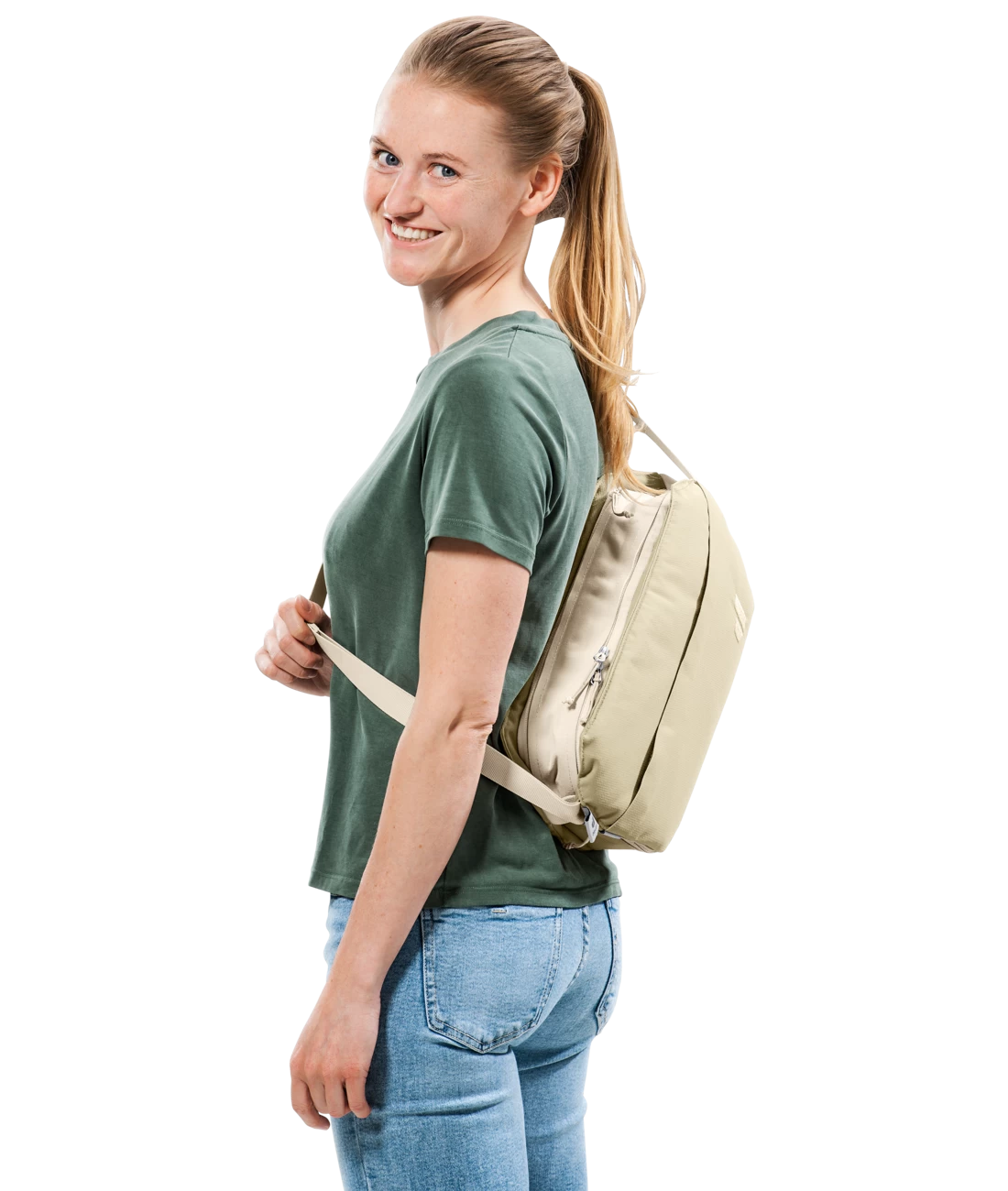Das im Handumdrehen um einen Liter erweiterbare Volumen der Crossbody Bag bietet allen Travellern neben persönlichen Wertgegenständen im Hauptfach auch genügend Platz für ein Tablet in einem zusätzlichen gepolsterten Fach. Zudem setzt das mit dem Grünen Knopf zertifizierte, klimaneutrale und PFC-freie bluesign® Produkt mit seinem Hauptmaterial aus 100 % recycelten Materialien und den 100 % umweltfreundlich hergestellten, ressourcenschonenden Bestandteilen ein klares Statement in Sachen Nachhaltigkeit.