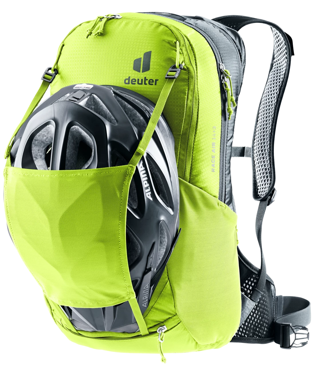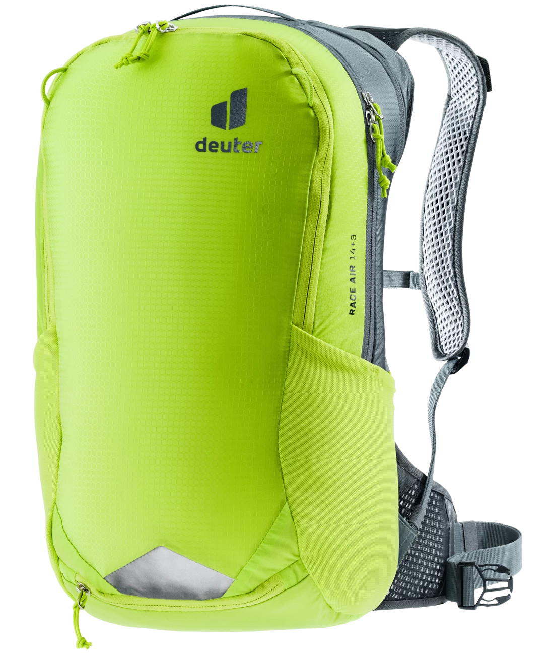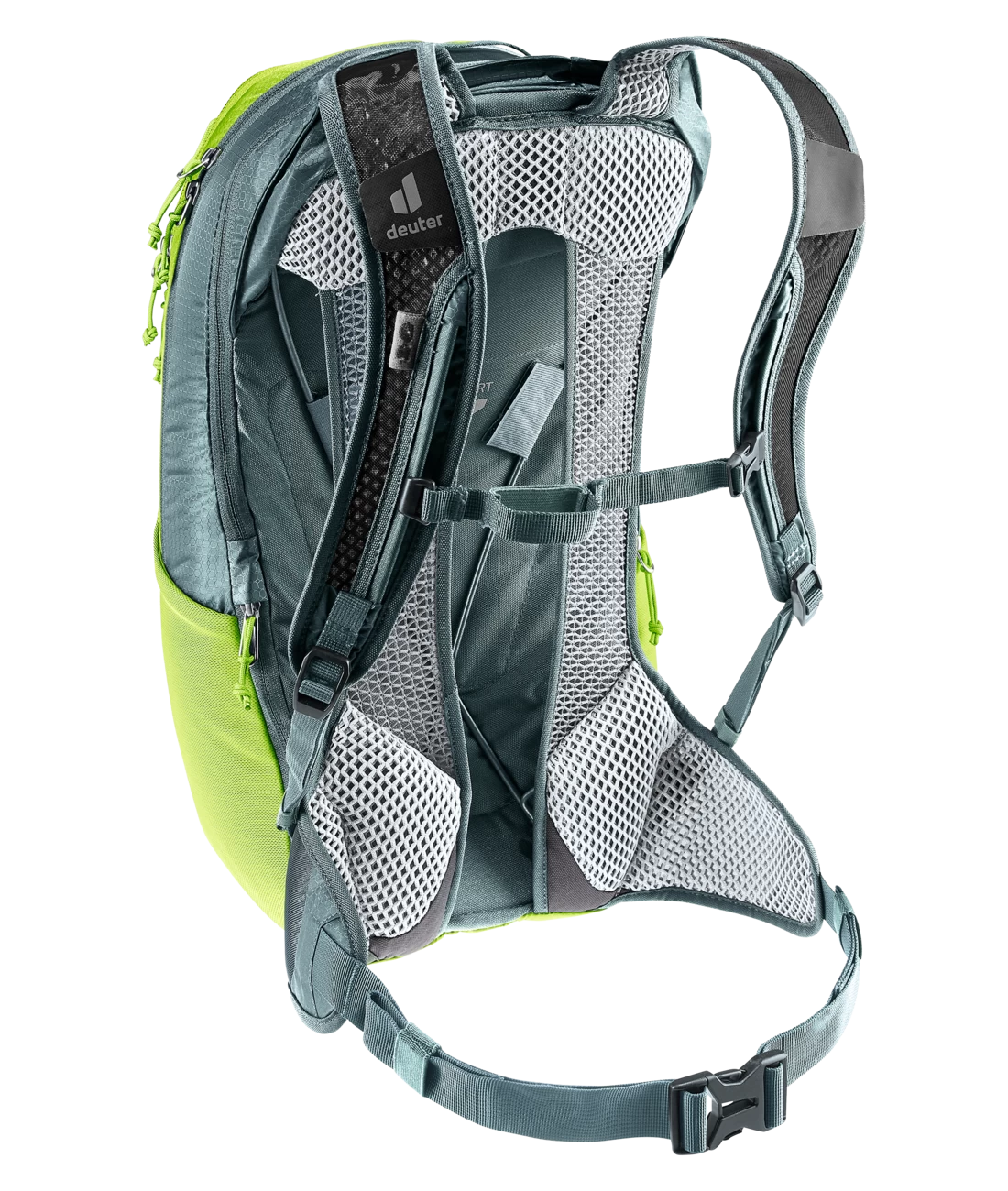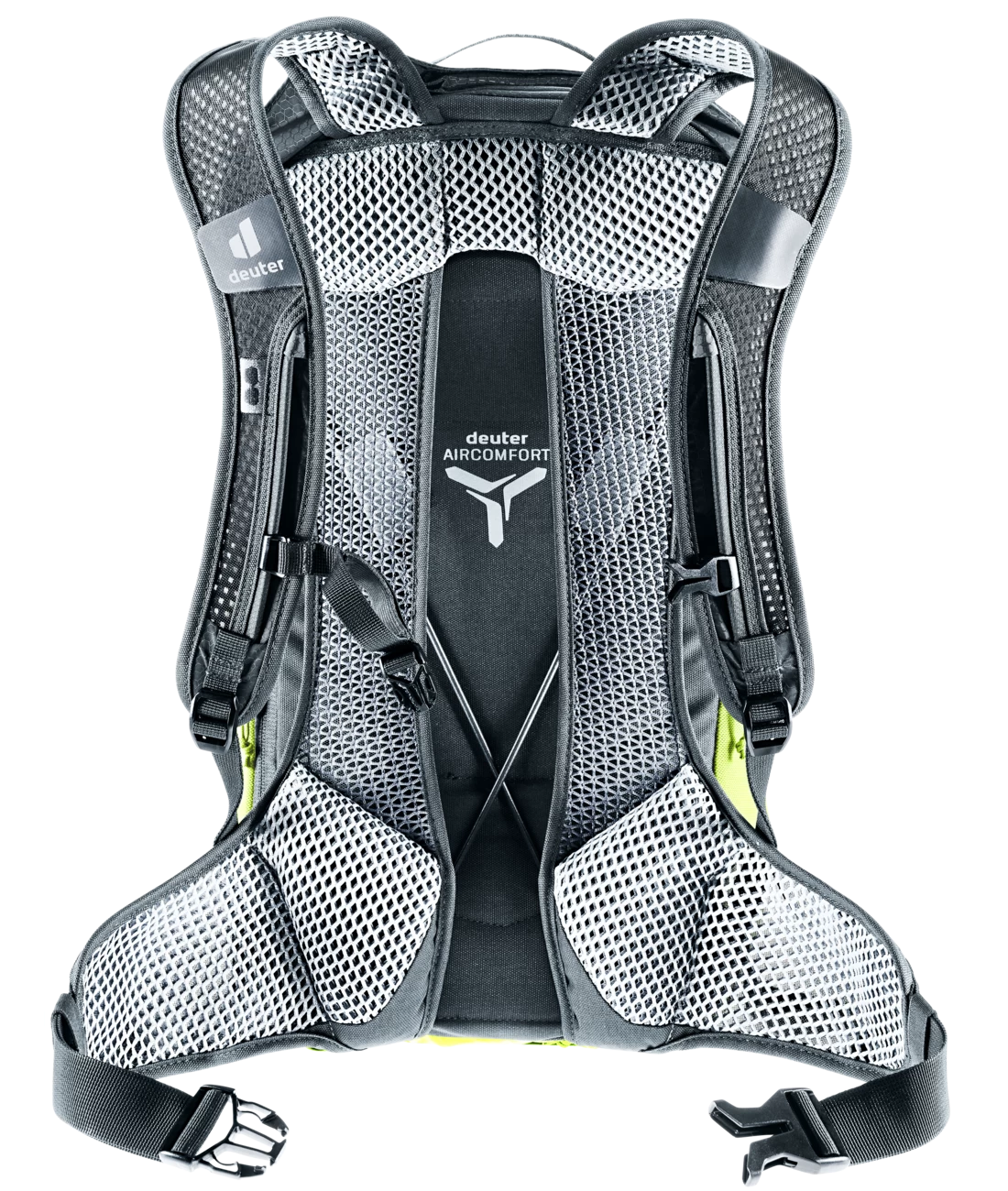 Extrem leichter, stabiler Bike-Rucksack mit hervorragender Gewicht-Komfort-Ratio. Das bikespezifische Aircomfort Rückensystem mit mittig geteiltem Netzrücken reduziert die Auflagefläche und verschafft der, in Fahrhaltung gekrümmten Wirbelsäule mehr Platz. Netzhüftflossen, perforierte Schulterträger und Rückenpolster sorgen für maximale Belüftung und kompakten Sitz. Der klimaneutrale, PFC-freie Rucksack für sportliche Mountainbiker*innen ist aus bluesign(R) zertifiziertem Hauptmaterial aus 100 % recycelten Stoffen und 100 % umweltfreundlich hergestellten, ressourcenschonenden Bestandteilen. Beim Deuter Race Air 14+3 können Sie das Volumen um zusätzliche 3 Liter erweitern – für den Fall der Fälle.