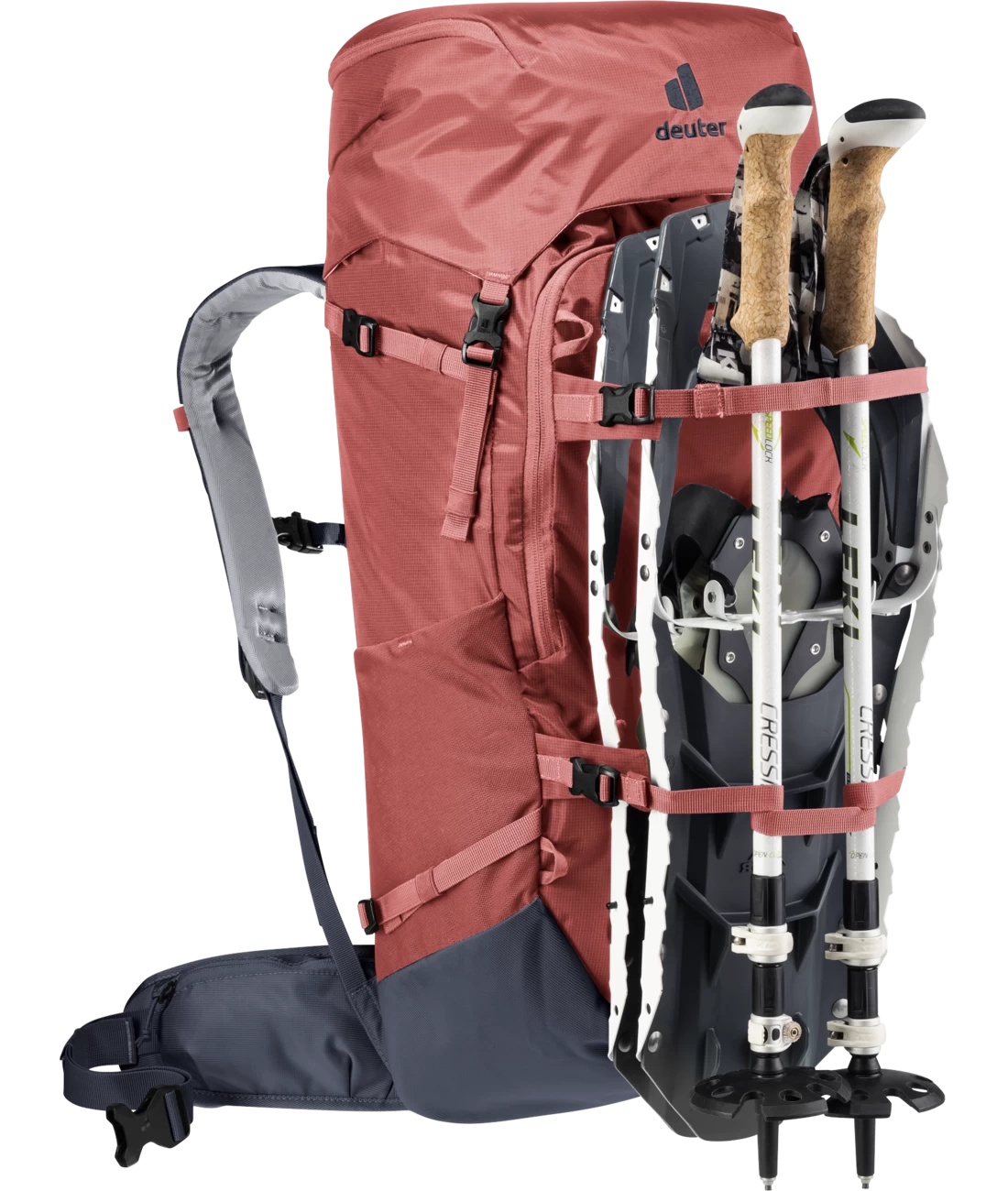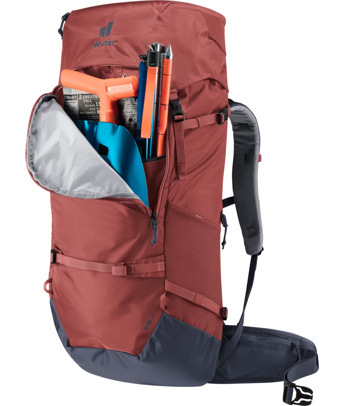 Der Rise ist ein komfortabler Schneeschuhtouren-Rucksack, der vielfältige Funktion und einfaches Handling vereint. So sorgt das atmungsaktive, schneeabweisende Material des Rückensystem für einen trockenen Rücken. Die aufklappbare Rückenöffnung ermöglicht den Zugriff auf die Ausrüstung, während die Schneeschuhe dabei mit zwei Kompressionsriemen außen fixiert bleiben. Das separate Sicherheitsfach für Sonde und Schaufel ist im Notfall sofort erreichbar. Zudem ist das bluesign® zertifizierte Hauptmaterial des strapazierfähigen, PFC-freien Rucksacks zu 100% recycled.