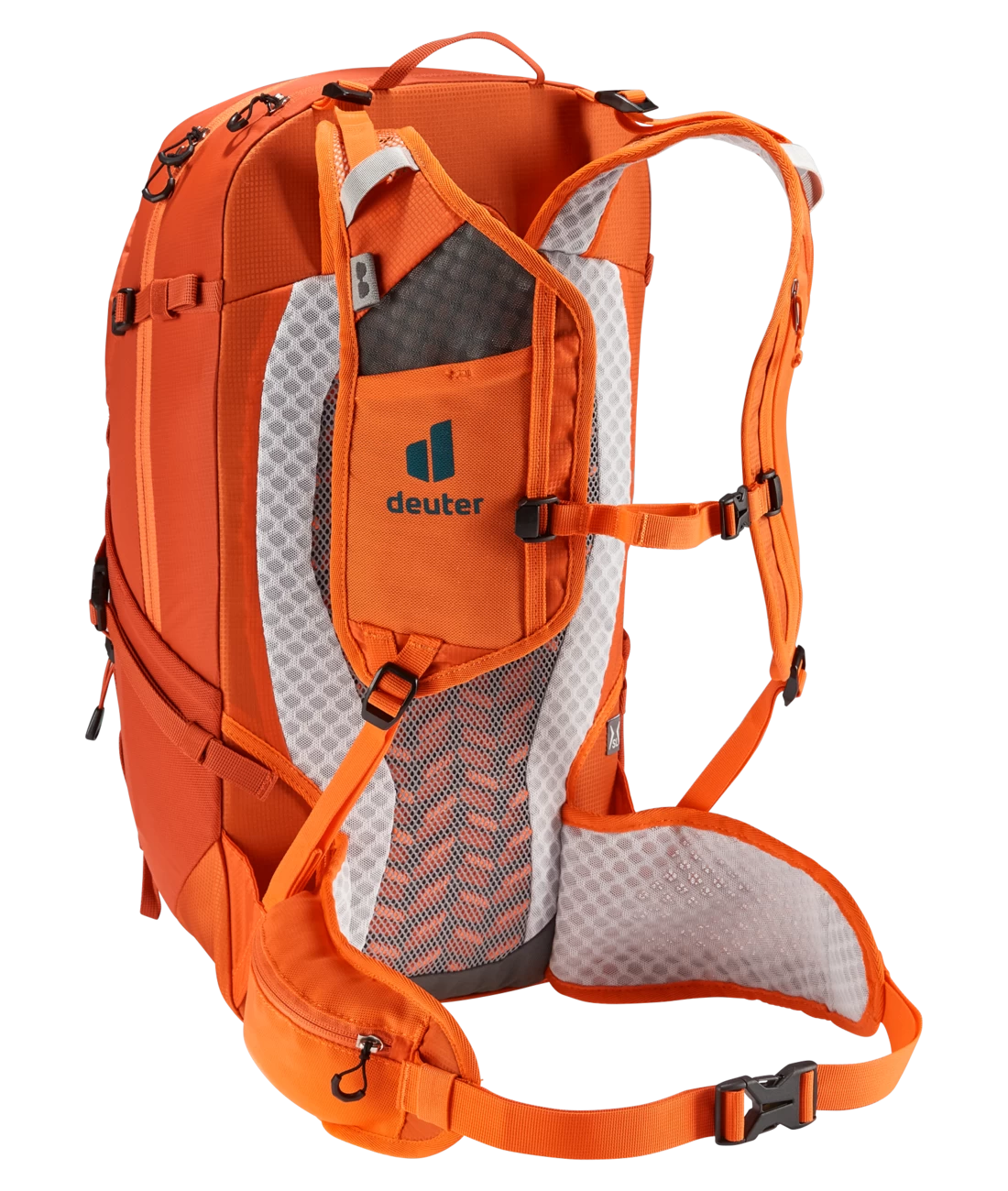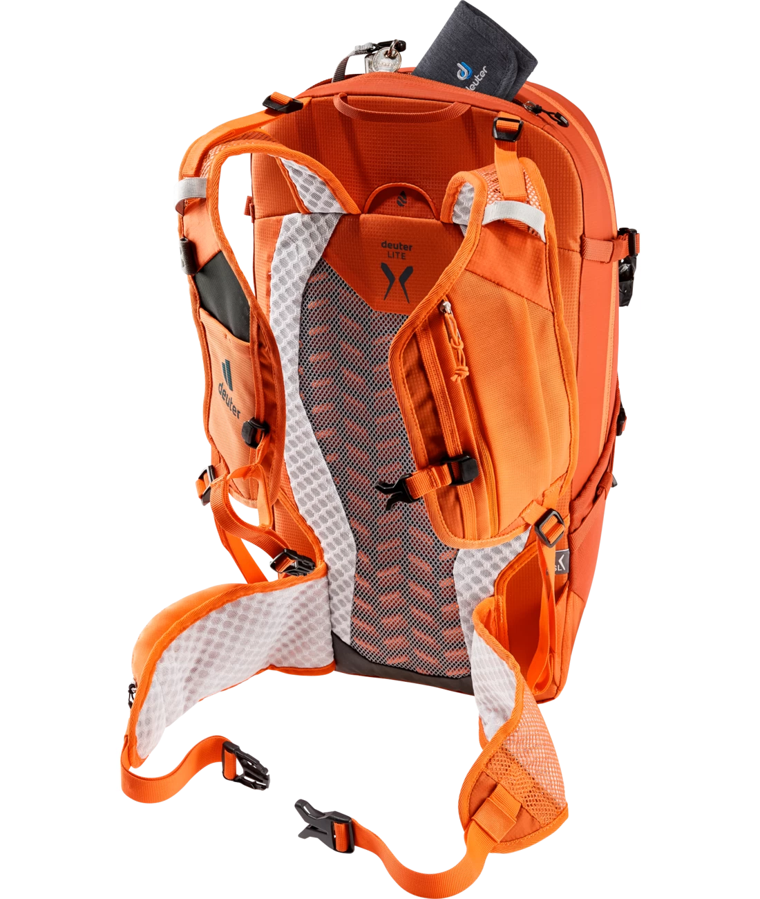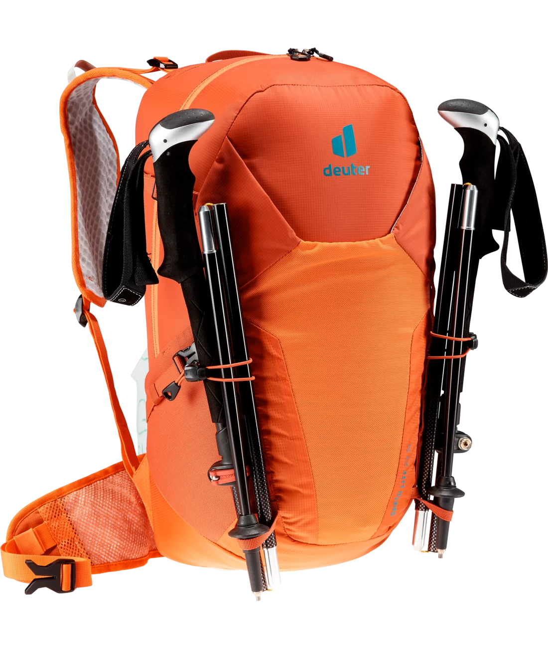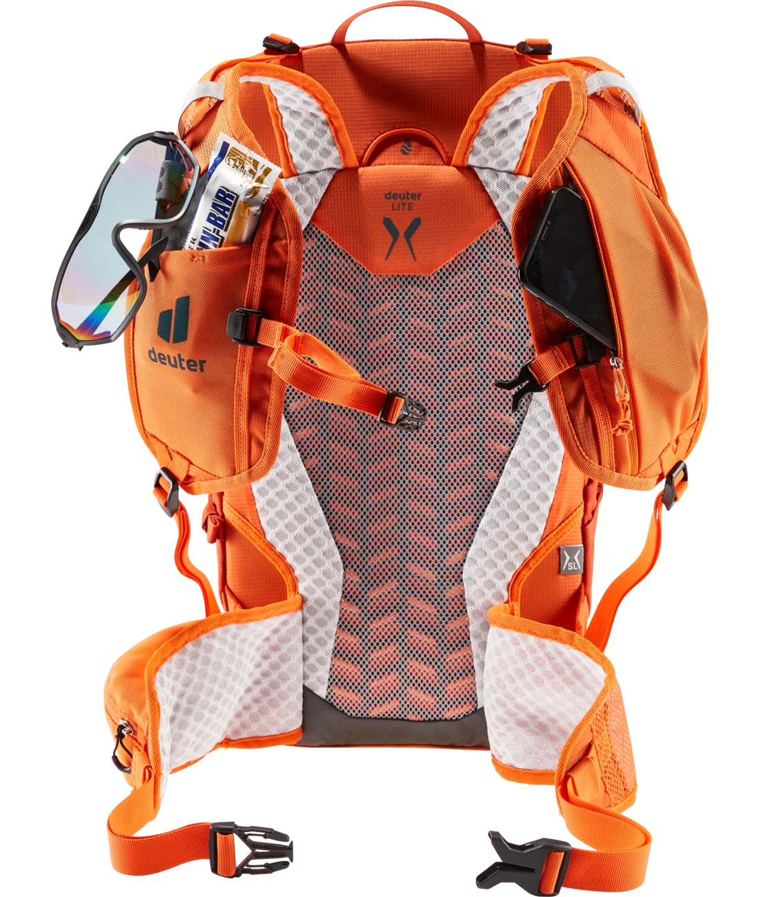 Leicht, schnell und nachhaltig am Berg dank bewährtem Lite Tragesystem, westenförmigen, perforierten Schulterträgern, anschmiegsamen Hüftflossen, stufenlos verstellbarem Brustgurt und 100% recyceltem und bluesign® zertifiziertem Hauptmaterial. Zudem sorgen seitliche Kompressionsriemen für die Minimierung von Auf- und Abbewegung der Ladung beim Laufen und damit für eine uneingeschränkte Bewegungsfreiheit. Und die am Schulterträger integrierte Tasche bietet genügend Platz für alles, was auf schnellen Hikes griffbereit sein soll.