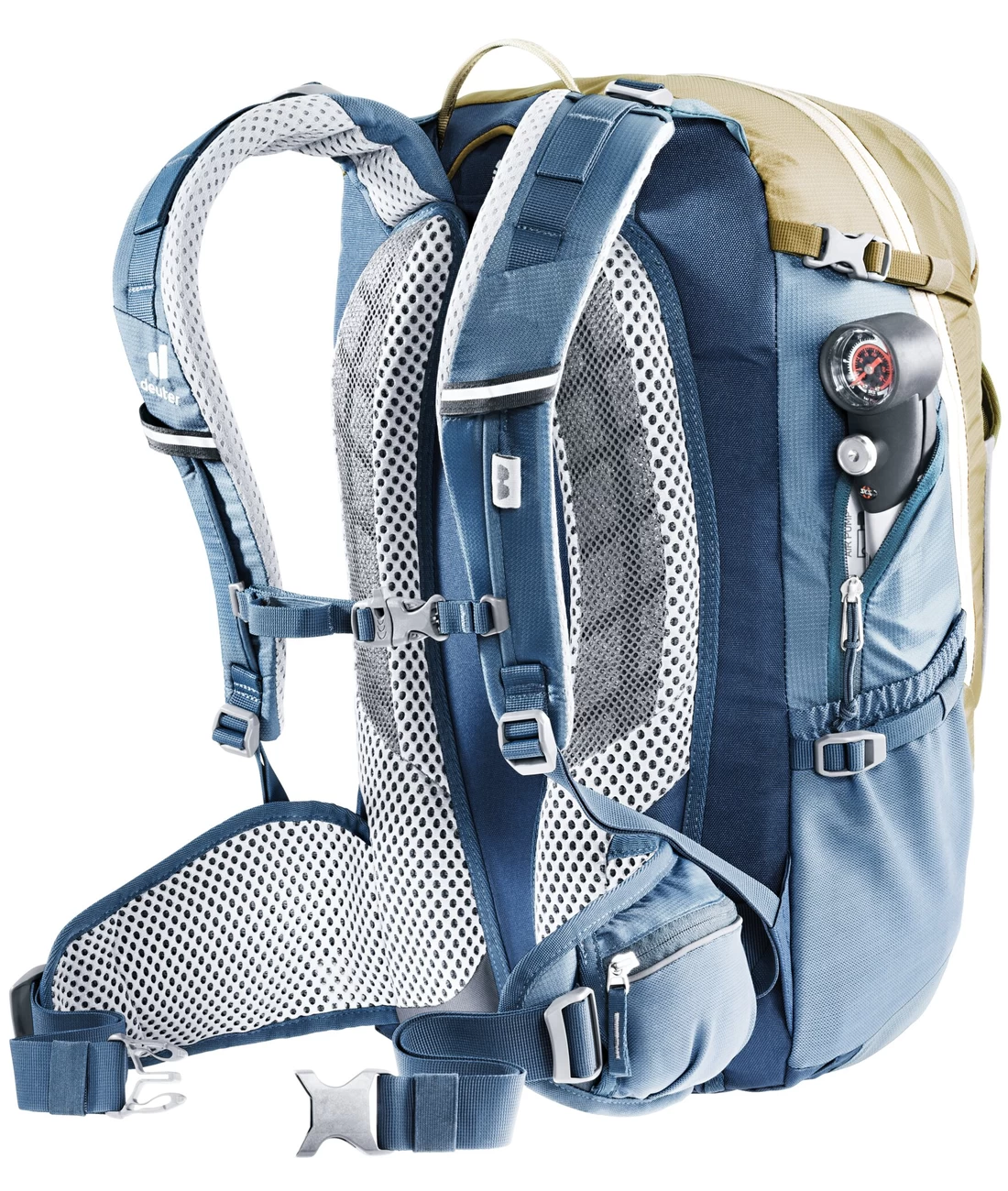 - Vortasche mit großem Organisationsteil und RV-Netztasche für Schlauch, Werkzeug und Pumpenhalterung