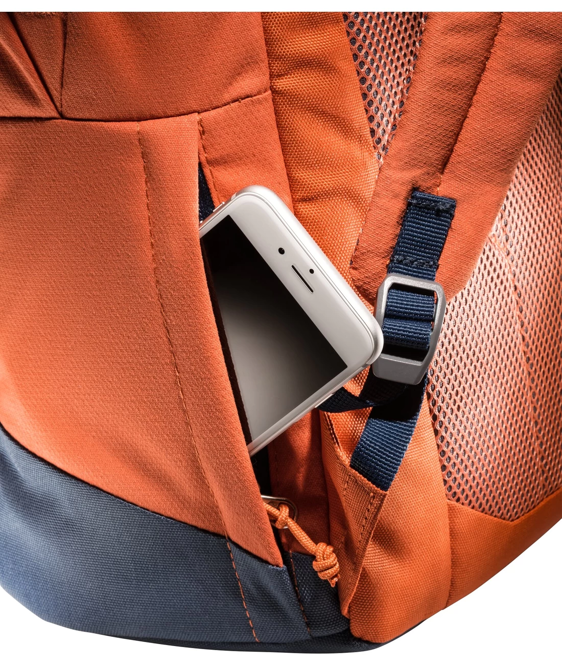 Dieser Daypack hat Charakter: Ecken und Kanten. Mit seinem gepolsterten, aber leichten Rückenteil lässt sich der kleine Rucksack platzsparend im Koffer verstauen und kommt dann stilsicher mit in die Stadt. Doch der superleichte Hipster ist auch alltagstauglich: Werden die seitlichen Metallhaken geöffnet, lassen sich selbst Ordner flott verstauen, ansonsten bietet der Reißverschluss schnellen Zugang zum Hauptfach. Das Handy reist geschützt und gut erreichbar im separaten Fach.