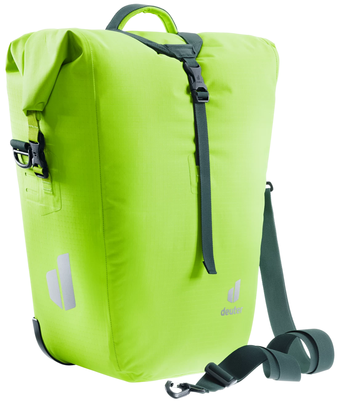 Die wasserdichte Fahrradtasche bewahrt Reisegepäck sicher vor dem Eindringen der Nässe durch Regen oder Spritzwasser. Dank des 2-Wege-Rolltopverschlusses kann das Volumen um zusätzliche 5 Liter erweitert werden. Die neu entwickelte BagFix-Halterung sorgt für maximale Bewegungsfreiheit, da die Last zu 100% auf dem Hinterrad und nicht auf dem Rücken des Bikers liegt. Die Tasche kann mit nur einem Handgriff vom Gepäckträger abgenommen und als Schultertasche verwendet werden. So sind ihrem Einsatz kaum Grenzen gesetzt.