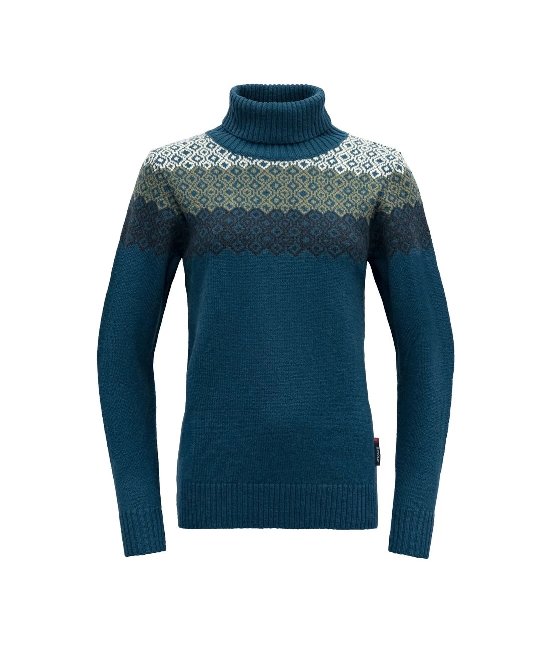 Der Devold® Syvde Pullover ist ein wunderschöner Strickpullover aus 100 % norwegischer Wolle. Das einzigartige Devold-Muster befindet sich im oberen Teil des Pullovers und verleiht dem Strickartikel einen femininen Look. Der weiche Strick ist aus leichten und feinen Wollfasern gefertigt und hat einen hohen Halsausschnitt mit Rippenstrick sowie Rippenstrick an den Bündchen. Passt perfekt über einen Devold Baselayer.