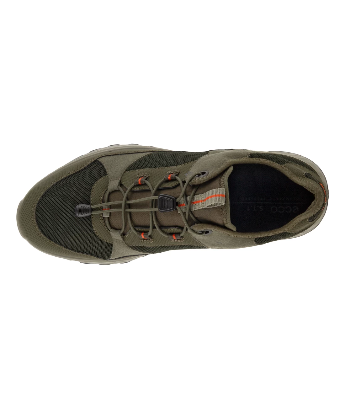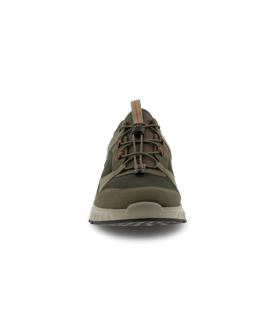 Der ECCO EXOSTRIDE Herrenschuh ist mit GORE-TEX für wasserdichten Schutz bei jedem Wetter ausgestattet. Dieser Outdoorschuh kombiniert sportliches Textilgewebe mit einer flexiblen Zwischensohle und einer griffigen Gummi-Außensohle.