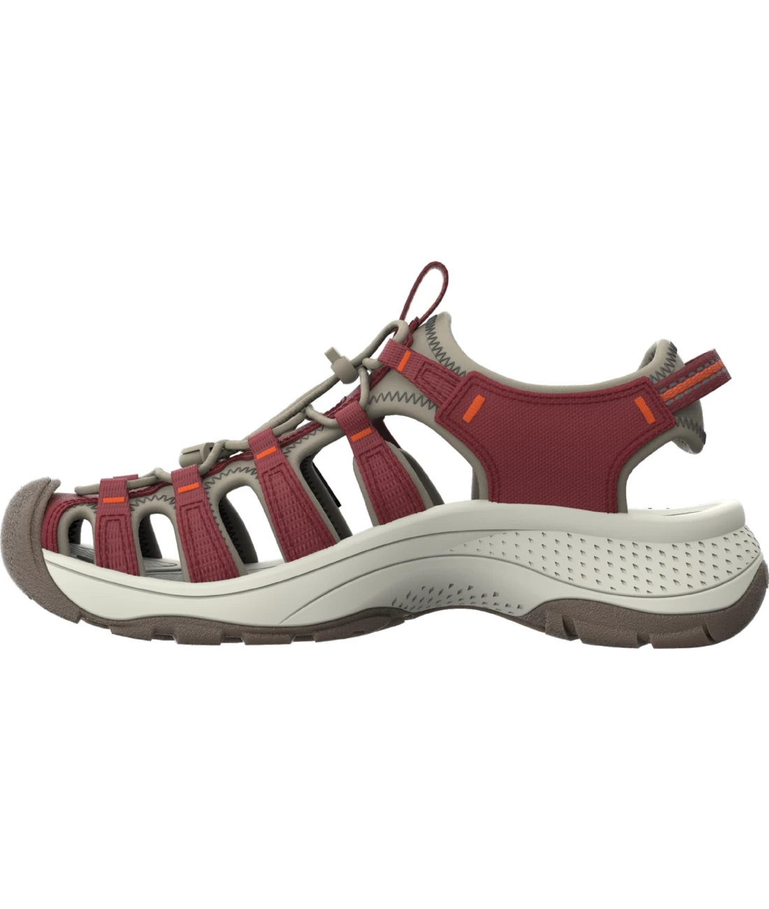 Die Original-Hybrid-Sandale von KEEN, mit Keilabsatz und frauenspezifischer Passform. Von Frauen für Frauen entwickelt, um mit der gleichen Sandale vom Trail in die Stadt zu gehen. Eco Anti-Odor-Ausstattung sorgt für eine natürliche, pestizidfreie Geruchskontrolle – so haben Sie lange Freude an dieser Sandale. Die Aquagrip-Gummi-Sohle mit zonaler Lamellierung bietet maximale Traktion auf nassen Oberflächen. Der Schnellverschluss erlaubt ein schnelles und leichtes Anziehen – einfach Reinschlüpfen und das Abenteuer kann los gehen.