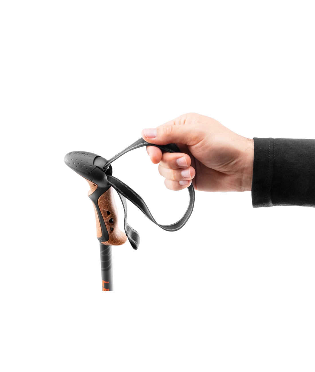 - Griff: Ultraleichter und kantenloser Trekking Griff mit bewährtem Komfort und ergonomischen Griffzonen sowie einer integrierten Sicherheits-Verstellschlaufe.