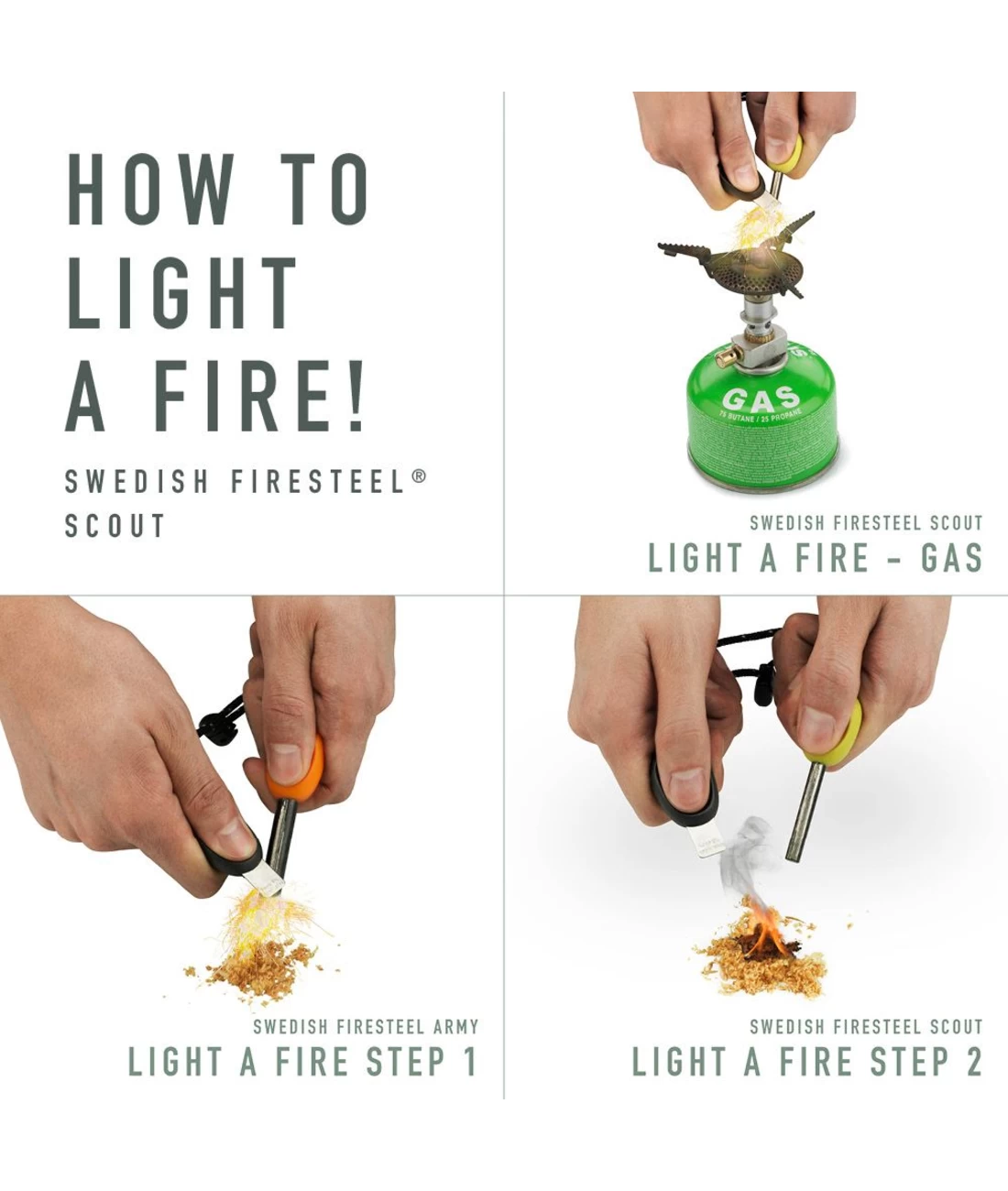 Der Hauptvorteil des Swedish FireSteel-Feuerstarters gegenüber herkömmlichen Zündhilfen ist seine absolute Zuverlässigkeit. Der Swedish FireSteel ist sehr robust und benötigt weder Feuerstein, Feuerzeugflüssigkeit, Batterien noch Ersatzteile. Der Swedish FireSteel-Feuerstarter funktioniert sogar unter rauen Bedingungen wie extremer Kälte, bei denen Gas kaum verdampft und sich schwer entzünden lässt. Im Gegensatz zu einem Butanfeuerzeug, das sowohl von Feuchtigkeit als auch vom Sauerstoffmangel in der Höhe beeinflusst wird, funktioniert der Swedish FireSteel auch in jeder Höhe tadellos. Seine Funken sind hell genug, um als Notsignal verwendet zu werden.
