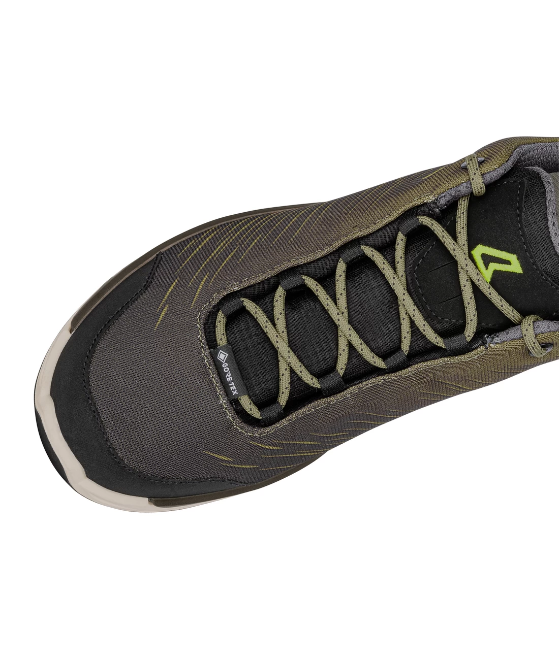 Garantiert keine halben Sachen macht der sportliche Multifunktionsschuh ZIRROX GTX LO. Ob nun im flachen Gelände oder auf unwegsamen Trails – der leichte Halbschuh steht schon rein optisch für jede Menge Dynamik am Berg. Wer bevorzugt schnell unterwegs ist, der bleibt dank geringem Gewicht, leichtgängiger Schnürung und robustem Textilmaterial bei jedem Wetter in Bewegung. Dafür sorgen allein die wasserdichte GORE-TEX-Membran und die LOWA®-MULTI-TRAC®-Sohle mit LOWA DynaPU®.