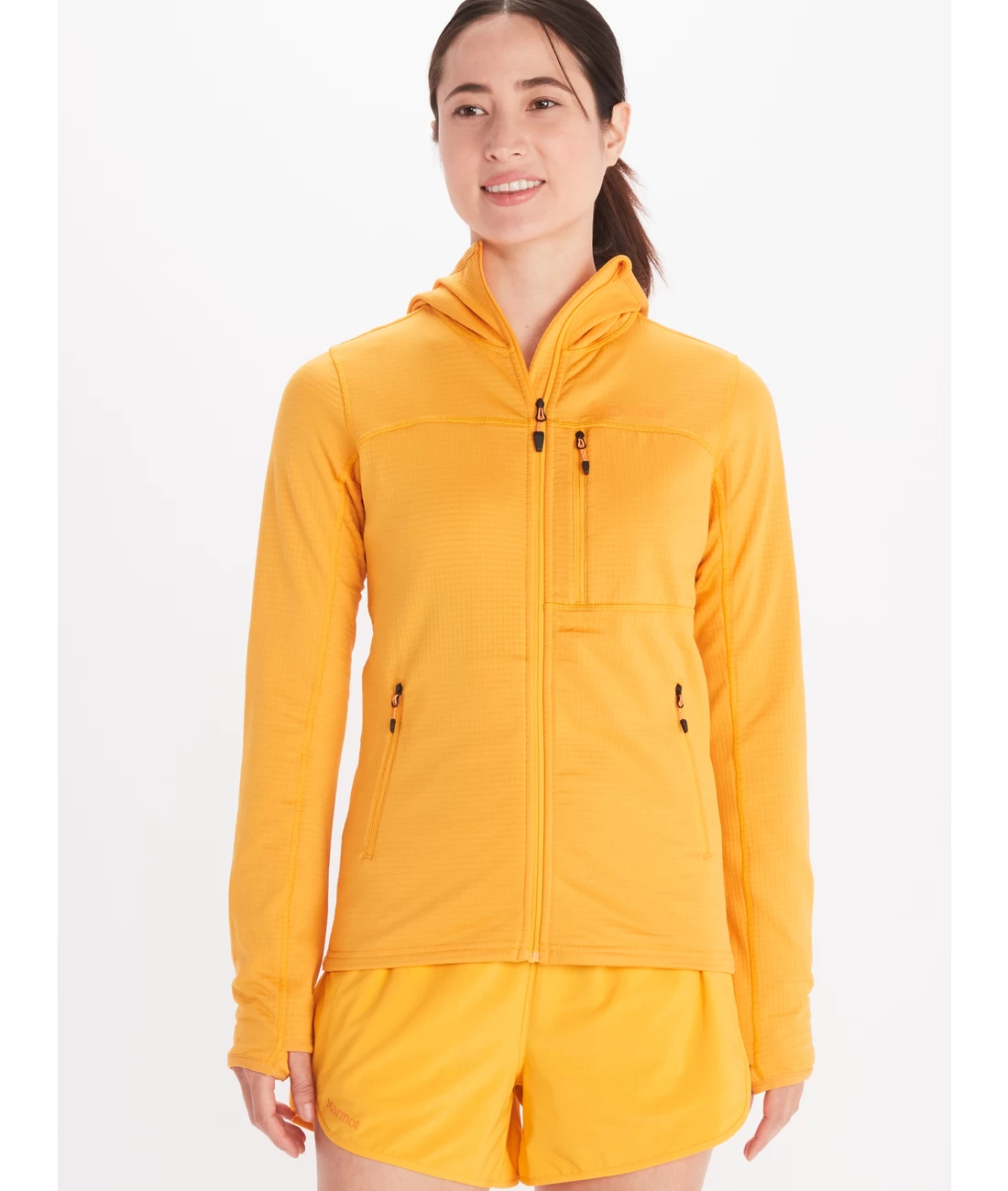 Wenn Sie in den Bergen in Ihrem Element sind und gerade alles geben, sollten Sie auf den Women’s Preon Hoody setzen. Das leichte Fleece lässt die Luft zirkulieren und hilft so dabei, Ihre Körpertemperatur zu regulieren. Die Form passt sich an Ihren Körper an und die Daumenlöcher sorgen dafür, dass sich die Hoodiejacke mit Ihrem Körper mitbewegt. Praktische Reißverschlusstaschen bieten Platz für kleinere Gegenstände und die fest angebrachte Kapuze passt gut unter einen Helm.