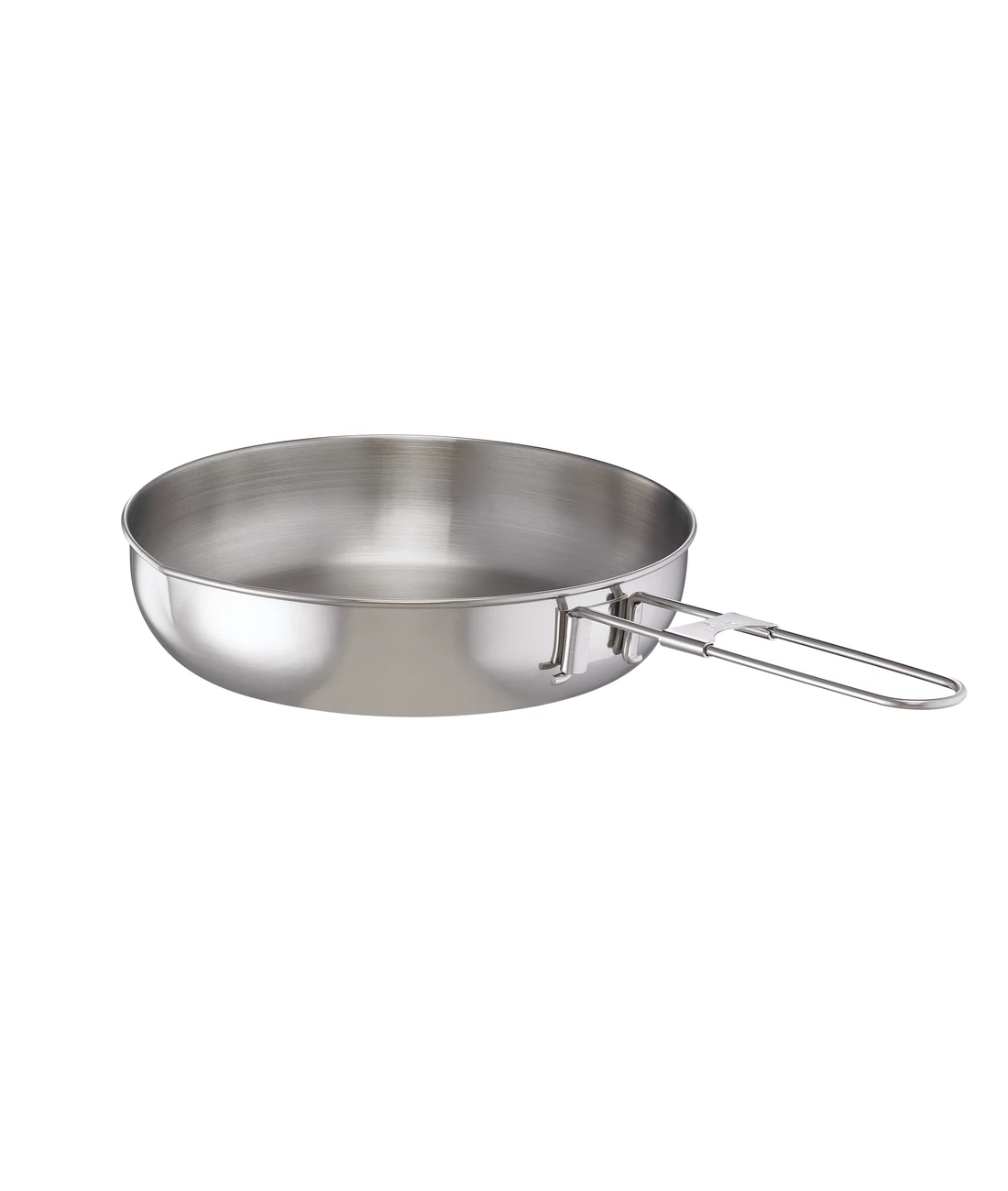 Die MSR Alpine Bratpfanne aus robustem und strapazierfähigem Edelstahl mit Klappgriff eignet sich für eine häufige Nutzung. Die zusätzliche Metallschicht an der Unterseite verteilt die Hitze noch gleichmäßiger und ermöglicht ein Kocherlebnis fast wie zu Hause.