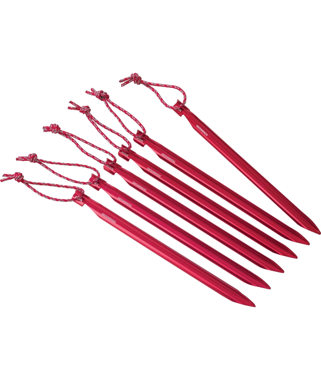 Die Groundhog Zeltheringe sind leichte und stabile Aluminiumheringe mit einer Sternenfläche (Y-Profil). Dieses Profil sorgt für ein kraftsparendes Handling und guten Halt. Eine reflektierende Zugschlaufe ermöglicht ein einfaches Entfernen.