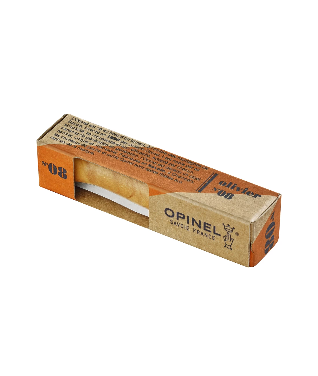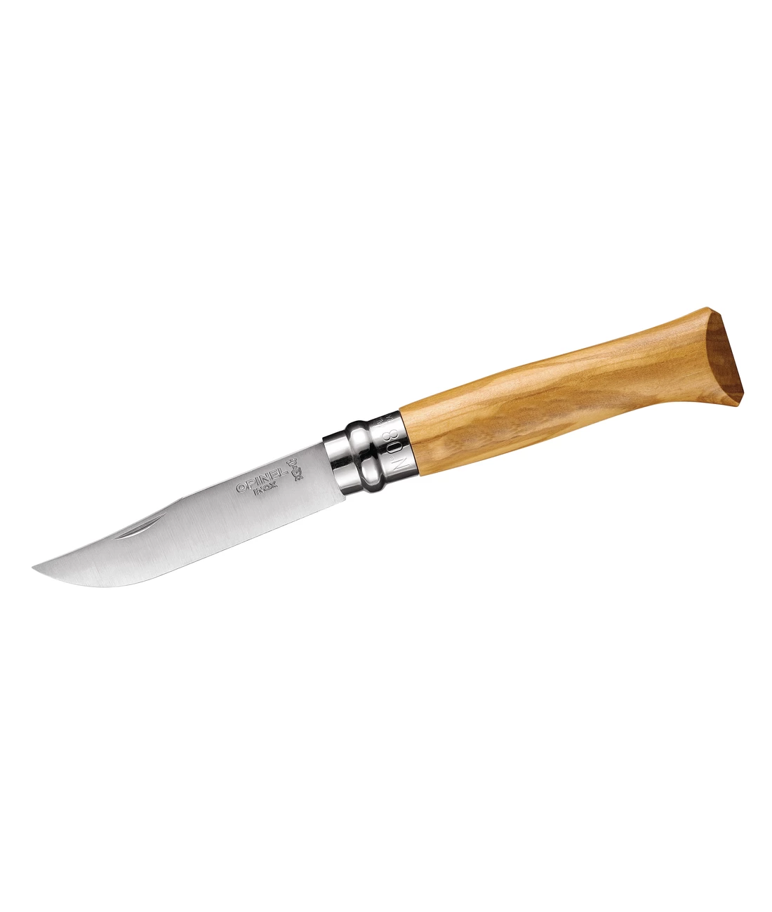Opinel Messer mit Olivenholz-Griff und einer Klinge aus rostfreiem Stahl. Natürlich gehört auch das einzigartige Virobloc-System dazu, mit dem sich die Klinge blitzschnell arretieren lässt. Um die Klinge festzustellen, muss nur der Sicherungsring gedreht werden.