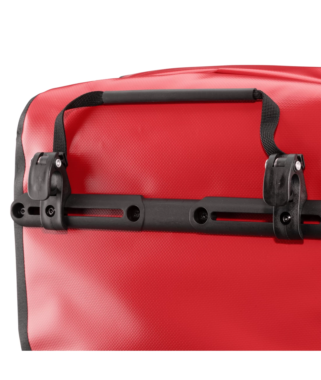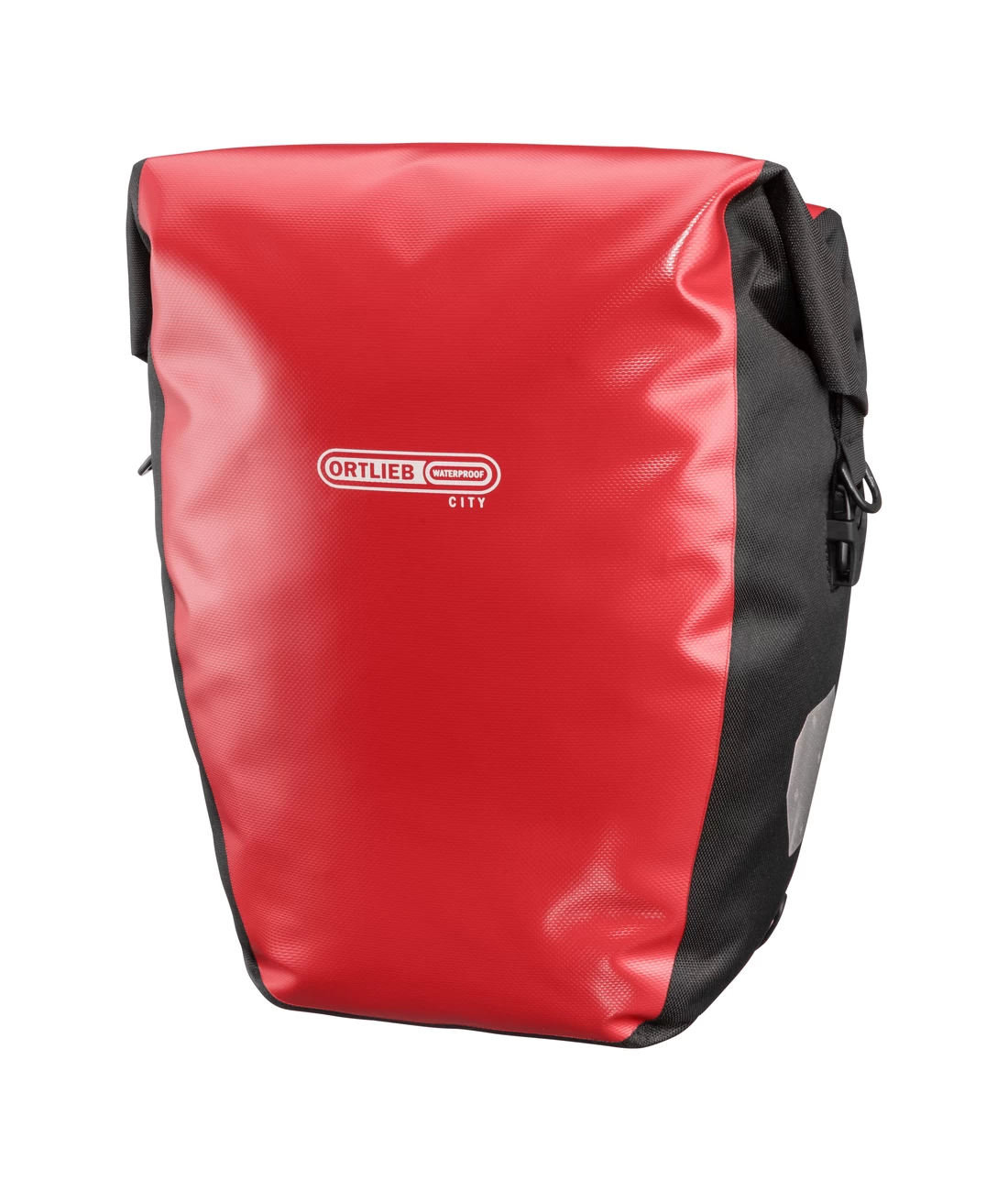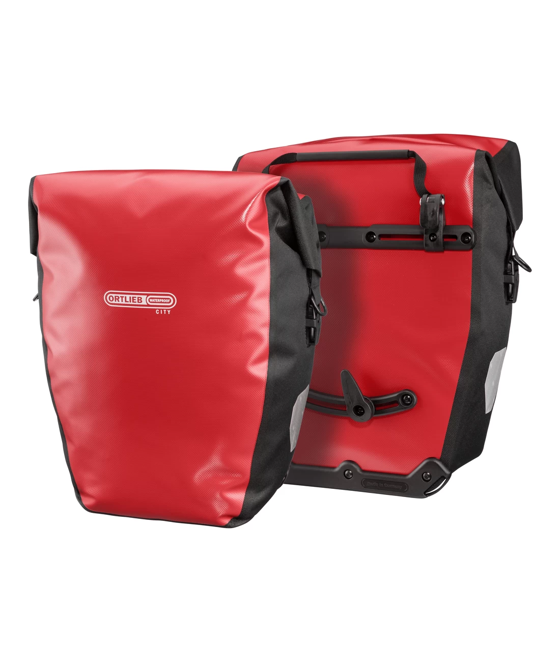 Der Back-Roller City als preisgünstiges Einstiegsmodell ist eine geräumige Packtasche für den hinteren Gepäckträger. Als Einzeltaschen können sie links oder rechts am Fahrrad befestigt werden. Die symmetrische, beidseitig angeschrägte Form sorgt dabei für die nötige Beinfreiheit. Das patentierte ORTLIEB Quick-Lock1-System gewährleistet schnelles und unkompliziertes Befestigen und Lösen der Tasche am Gepäckträger. Beim Einhängen am Gepäckträger arretieren die Befestigungshaken selbsttätig. Zum Abnehmen, einfach am schmalen Tragegurt anheben. Damit die Tasche an verschiedenen Gepäckträgern passt, können die 16mm Grundhaken mit Einsätzen (8 und 11 mm) verkleinert werden. Zur weiteren Fixierung dient die halb-elliptische Hakenschiene auf der unteren Taschenrückseite. Dank drehbarem Arretierungshaken ist sie in 15° Schritten an praktisch alle Gepäckträger anpassbar.