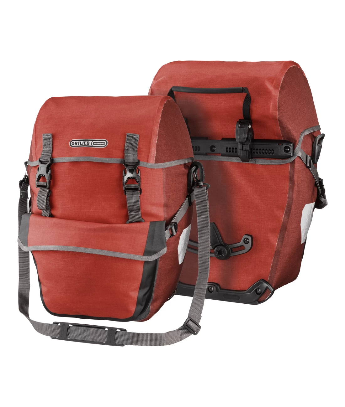 Hinterrad-Packtasche (Paar) mit Deckelverschluss und wasserdichtem Frontfach.