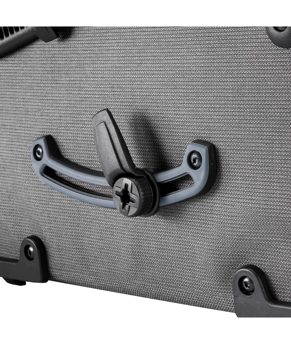 - Untere Hakenschiene aus Zwei-Komponenten-Kunststoff „Hart-Weich“ verhindert Beschädigung des Gepäckträgers