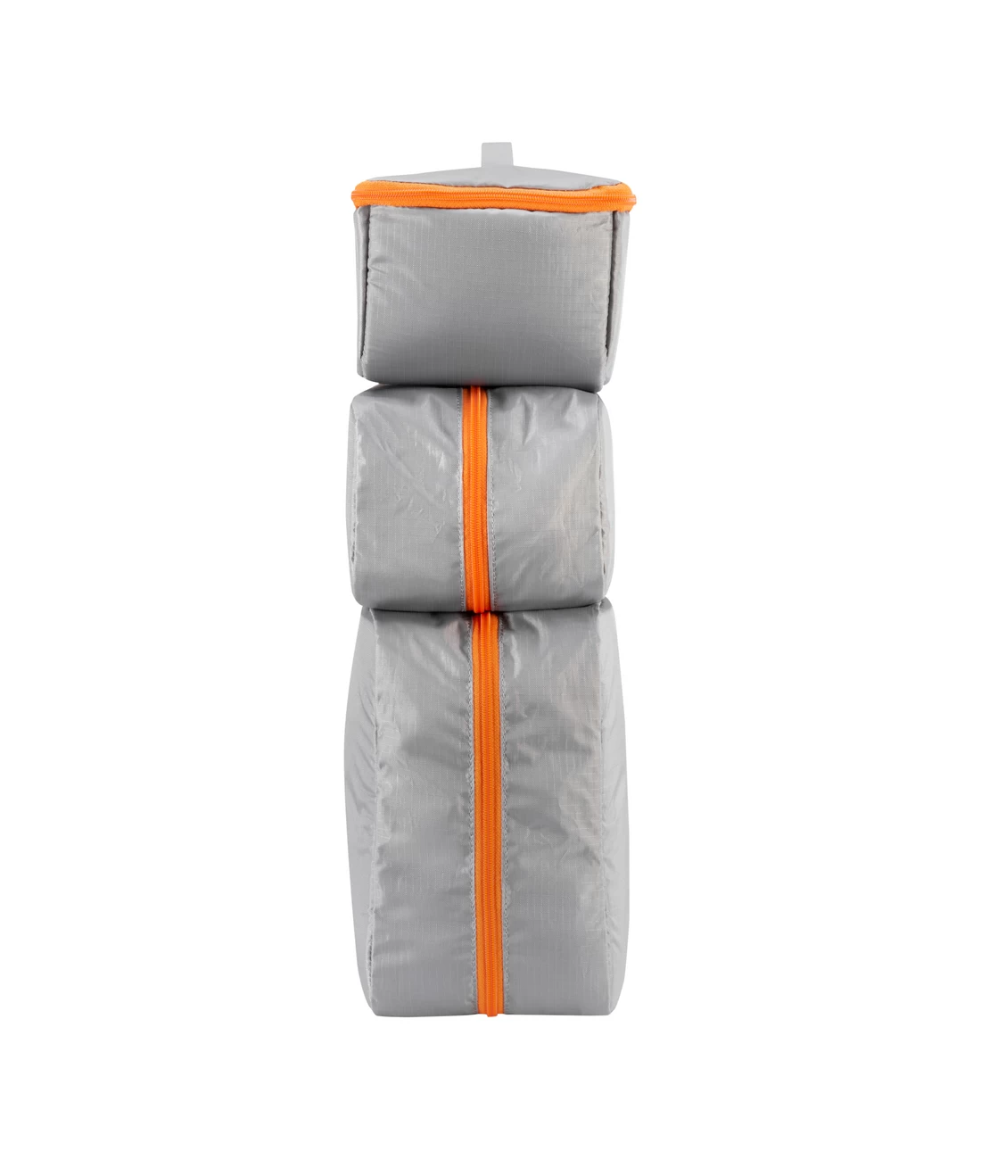 - Bundle bestehend aus Packing Cube S, Packing Cube L und Toiletry Bag