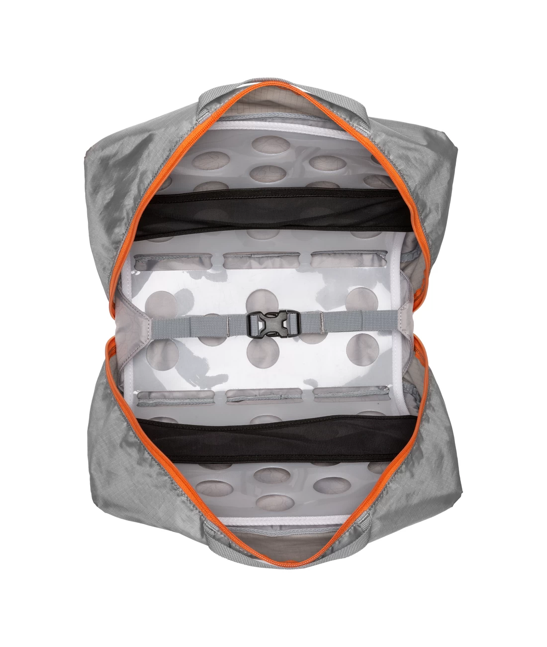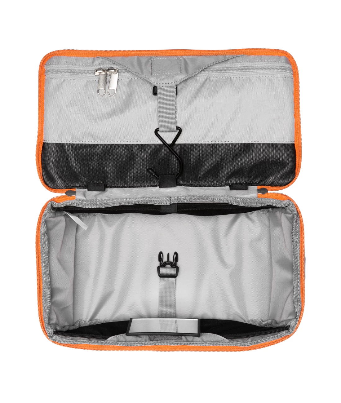 Das Set besteht aus je einem Packing Cube S, einem Packing Cube L und einem Toiletry Bag. Die beiden Packing Cubes überzeugen vor allem durch ihre inneren Werte, verbergen sich doch in beiden patentierte Faltschablonen, die das faltenfreie und platzsparende Packen zum absoluten Kinderspiel machen. Der Packing Cube S ist mir sechs Litern ideal für die Mitnahme von Hemden oder T-Shirts. Die zwölf Liter Volumen des Packing Cube L nehmen sogar Jacken, Pullover, Schuhe oder Hosen mühelos mit auf Reisen. Die Toiletry Bag eignet sich durch ihre Einsteckfächer, den Kosmetikspiegel, eine Innentasche mit Reißverschluss und nicht zuletzt durch den Aufhängehaken perfekt als Kulturtasche – unabhängig davon, ob die Reise ins Hotel führt oder im Zelt übernachtet wird.