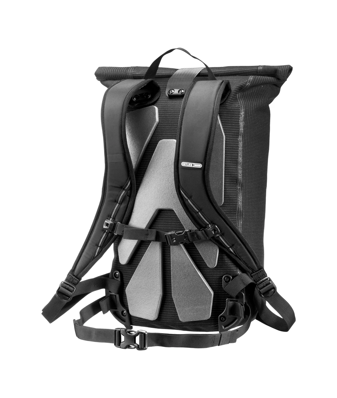 Der handliche Daypack aus der High Visibility Linie bietet hohe Sichtbarkeit und Sicherheit im Straßenverkehr, denn das PU-beschichtete Corduragewebe ist komplett mit einem leuchtstarken Reflexgarn durchzogen. Bei Dunkelheit im Straßenverkehr wird so der komplette Rucksack zum Reflektor, wodurch Fahrradfahrer deutlich früher wahrgenommen werden. Mit 23 Liter Volumen hat er die richtige Rucksackgröße für Schüler, Studenten oder Pendler. Der Roll-Klettverschluss garantiert 100% Wasserdichtheit und trotzdem schnellen Zugriff und einfaches Packen. Eine oben und unten fixierte Innentasche mit Laptopfach verstaut Notebooks (max. 15,4″) sicher und wasserdicht. Schaumpolsterrücken, anatomisch geformte Schulterträger mit Brust- und Hüftgurt erhöhen den Tragekomfort. Der Kantenschutz an den unteren Ecken schützt vor Abnutzung. An der Klettpatte kann zusätzlich ein Rücklicht oder der Fahrradhelm befestigt werden. Der Velocity High Visibility ist PVC-frei und nachhaltig in Deutschland hergestellt.