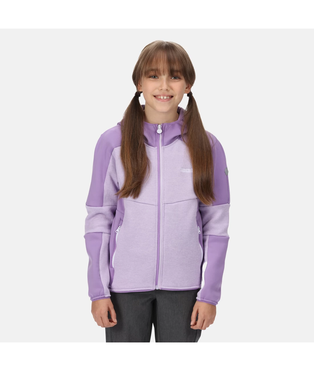 Hochwertige, schicke Fleecejacke für Kinder in melierter Strickoptik und mit stretchelastischen EXTOL-Einsätzen für mehr Bewegungsfreiheit. Stretcheinfassungen an Ärmeln, Kapuze und Saum sorgen für einen optimalen Sitz. Die beiden Eingrifftaschen haben einen Reißverschluss, der alles sicher verstaut.