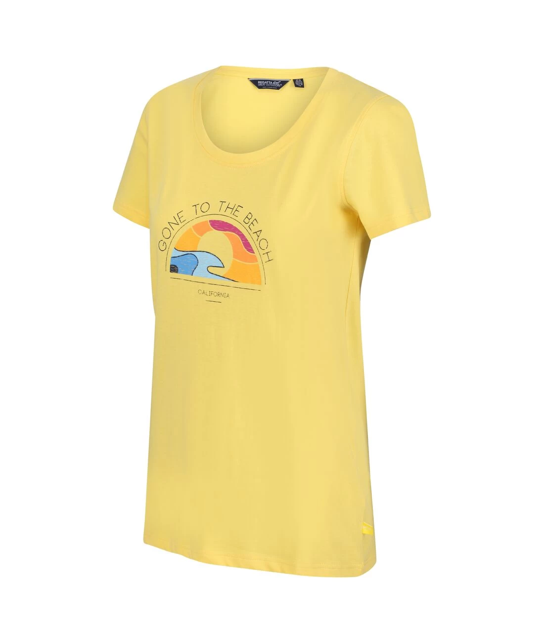Bequemes, leichtes Damen-T-Shirt aus reiner Baumwolle mit Motivdruck und Rundhalsausschnitt.