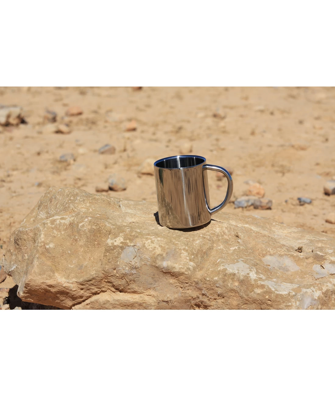 Der Thermobecher hat eine Doppelwandkonstruktion und einen eleganten und griffgünstigen Edelstahlgriff. Super poliert und in schönem Design. Der Becher ist spülmaschinenfest.