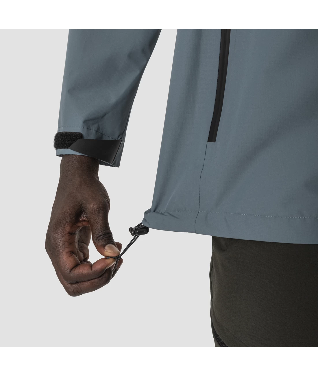 Um bei harschen Bedingungen optimalen Schutz zu garantieren, wurde die Puez Aqua Jacket zwischen den schroffen Berggipfeln der Dolomiten entwickelt und ausgiebig getestet. Das 2,5-Lagen Ripstop-Gewebe mit Powertext®-Membran besteht zu 57 Prozent aus recycelten Materialien und ist der ideale Begleiter bei widrigen Wetterverhältnissen. Mit einer Wassersäule von 10.000 Millimetern ist das Material zuverlässig wasserdicht: Die Wassersäule beschreibt dabei den Druck, der gebraucht wird, bis Wasser durch den Stoff dringen kann. Dennoch bleibt die Jacke mit 10.000 g/m²/24h äußerst atmungsaktiv: Das bedeutet, innerhalb von 24 Stunden können 10 Liter Wasserdampf pro Quadratmeter verdampfen – so verspricht die Jacke selbst bei anstrengenden Aktivitäten einen angenehmen Tragekomfort.